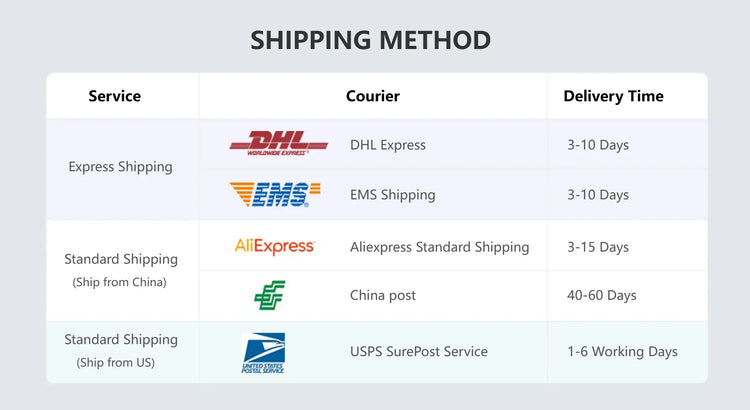 • Please note that processing time may vary during peak seasons or promotional periods, and we cannot guarantee specific delivery times.