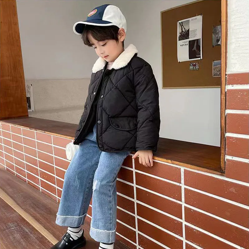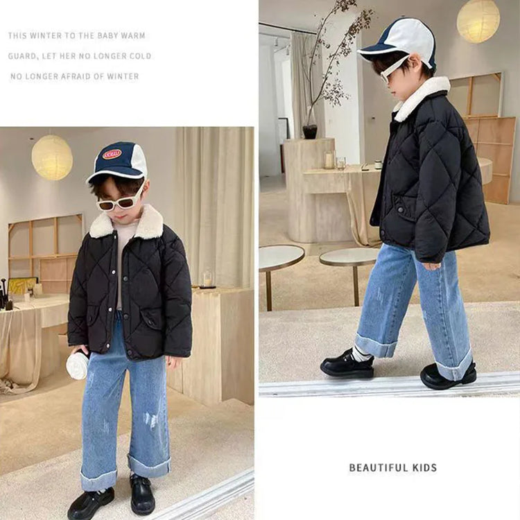 Lightweight Down Jackets Lapel Collar Cotton Clothes Autumn Winter Warm Casual Outerwear Kid Boys Girls Baby Coat Christmas Gift