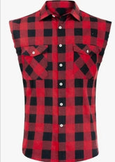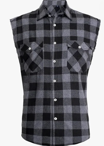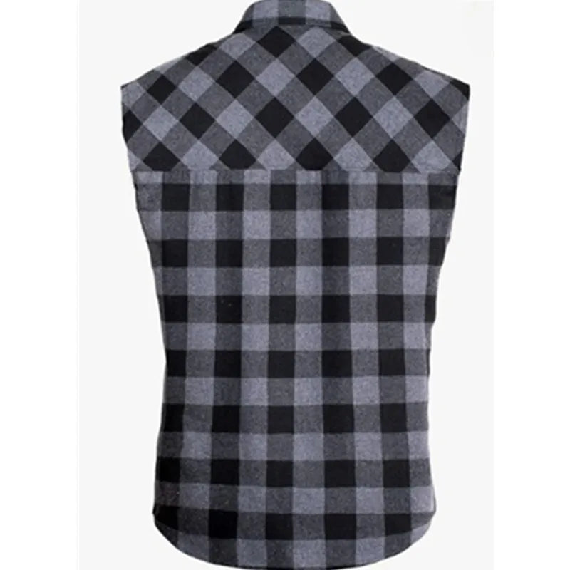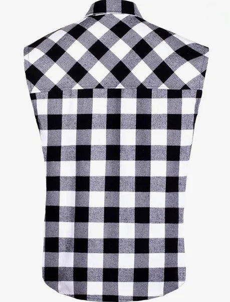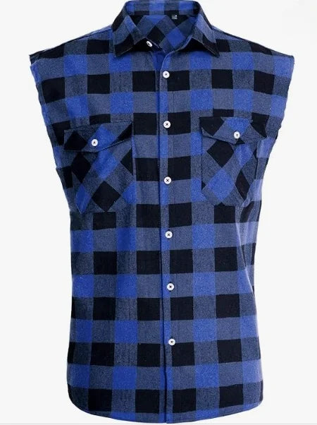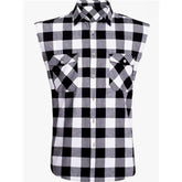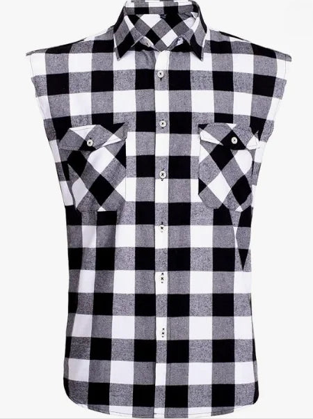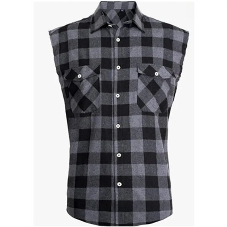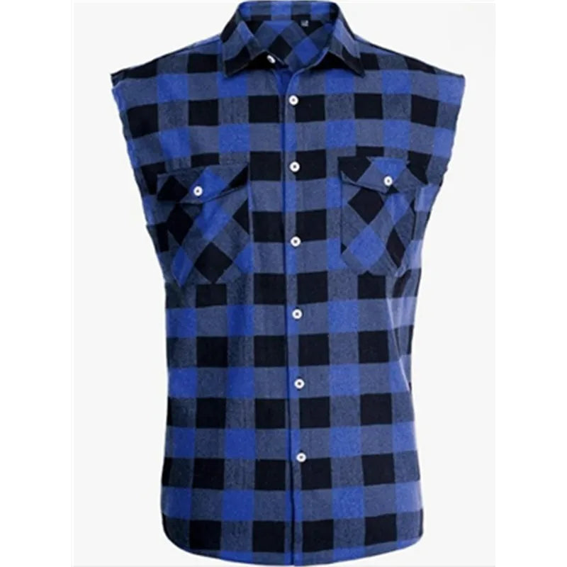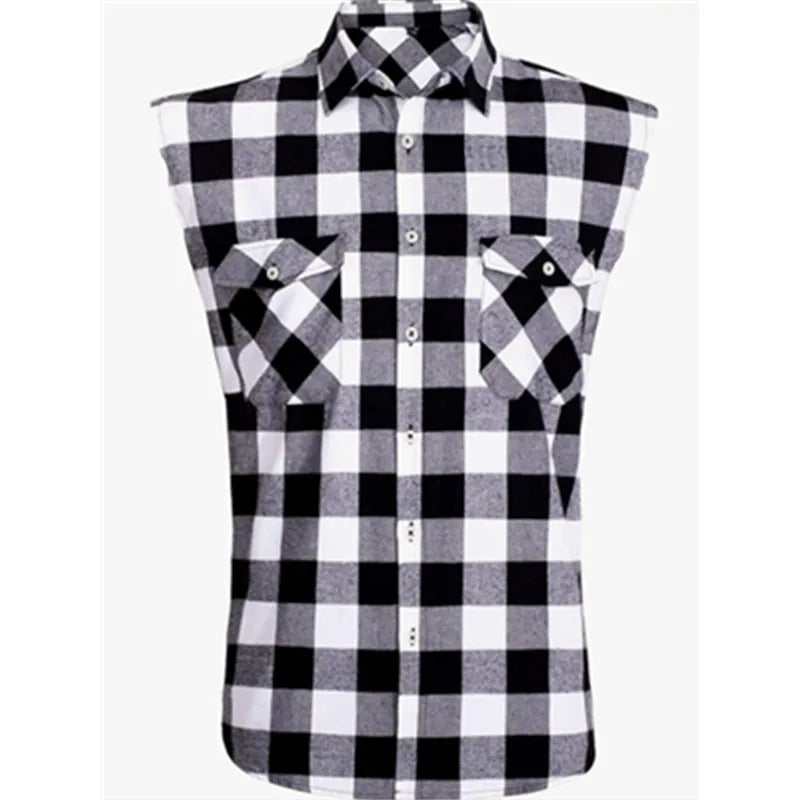 Men's Sleeveless Plaid Front Shirt Beach Cool Tops Baroque Short Sleeve Printed Button Clothing Casual Fashion Blouse