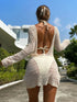 2025 New Beach Wear Long Sleeved Sexy Backless Bikini Cover Up Three Piece Set with Bikini Swimsuit