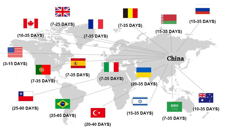 • Delivery times may vary depending on carrier delays, customs clearance, or factors beyond our control. We are not liable for any delays once the package leaves our warehouse.