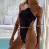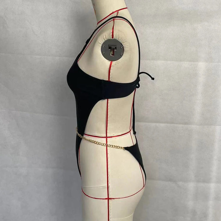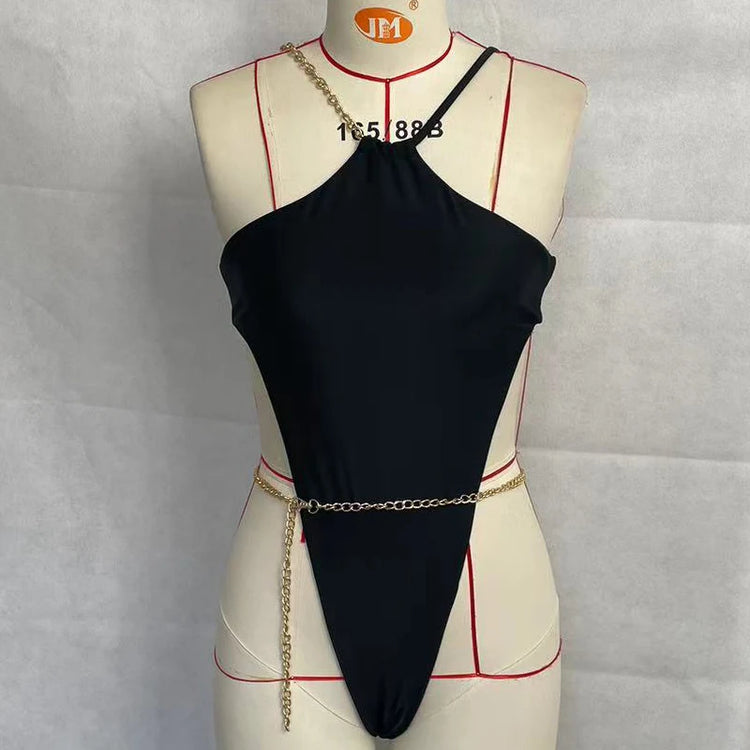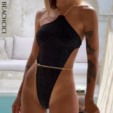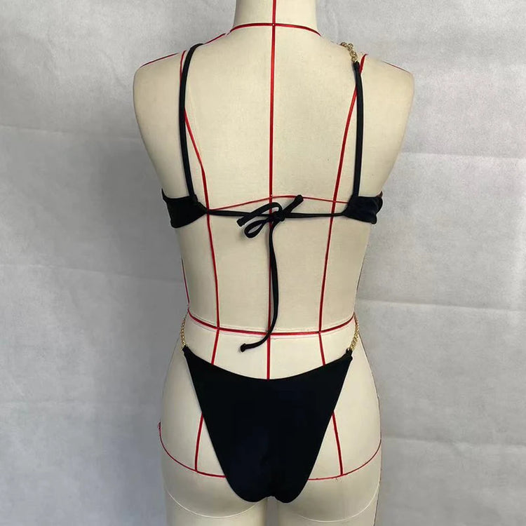 BEACHBELE Bikinis Summer Fashion Chic Solid Chain Halter Neck Backless Lace Up Sleeveless Swimsuit Holiday Beachwear For Women