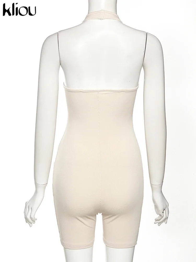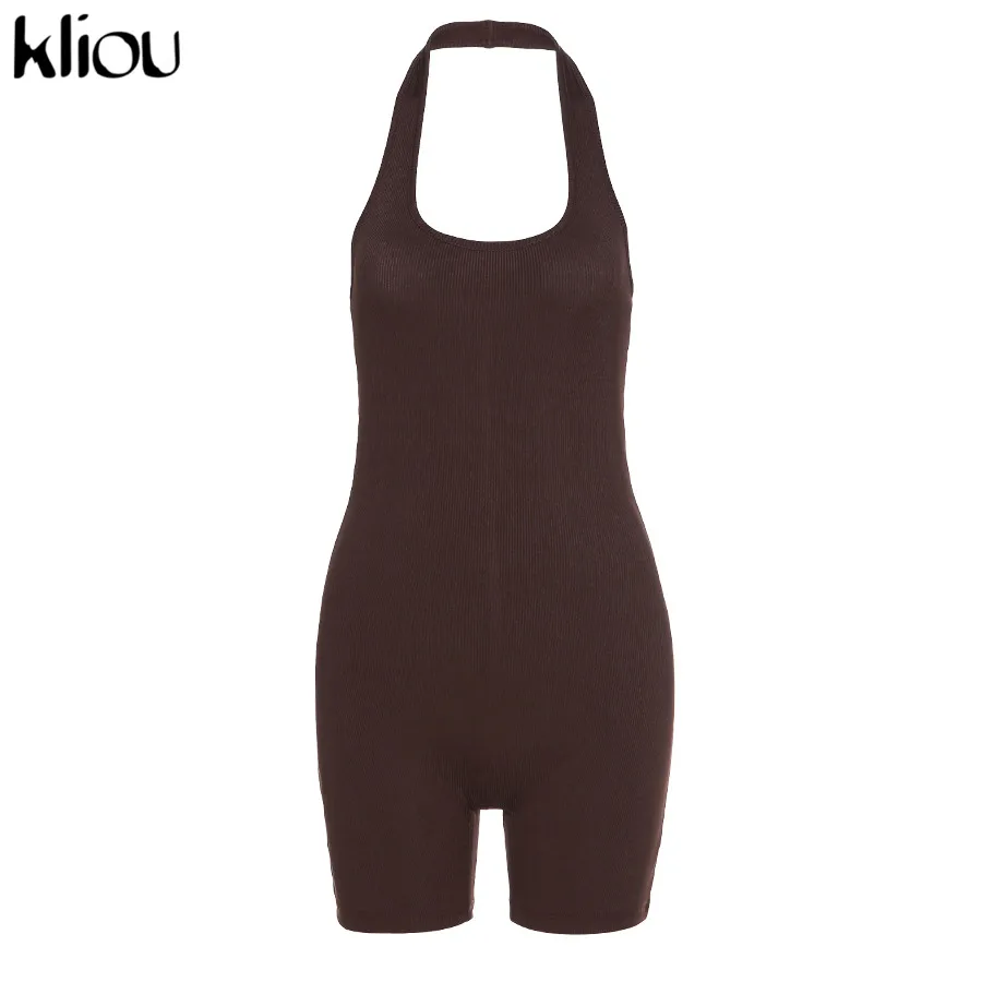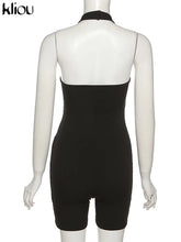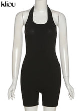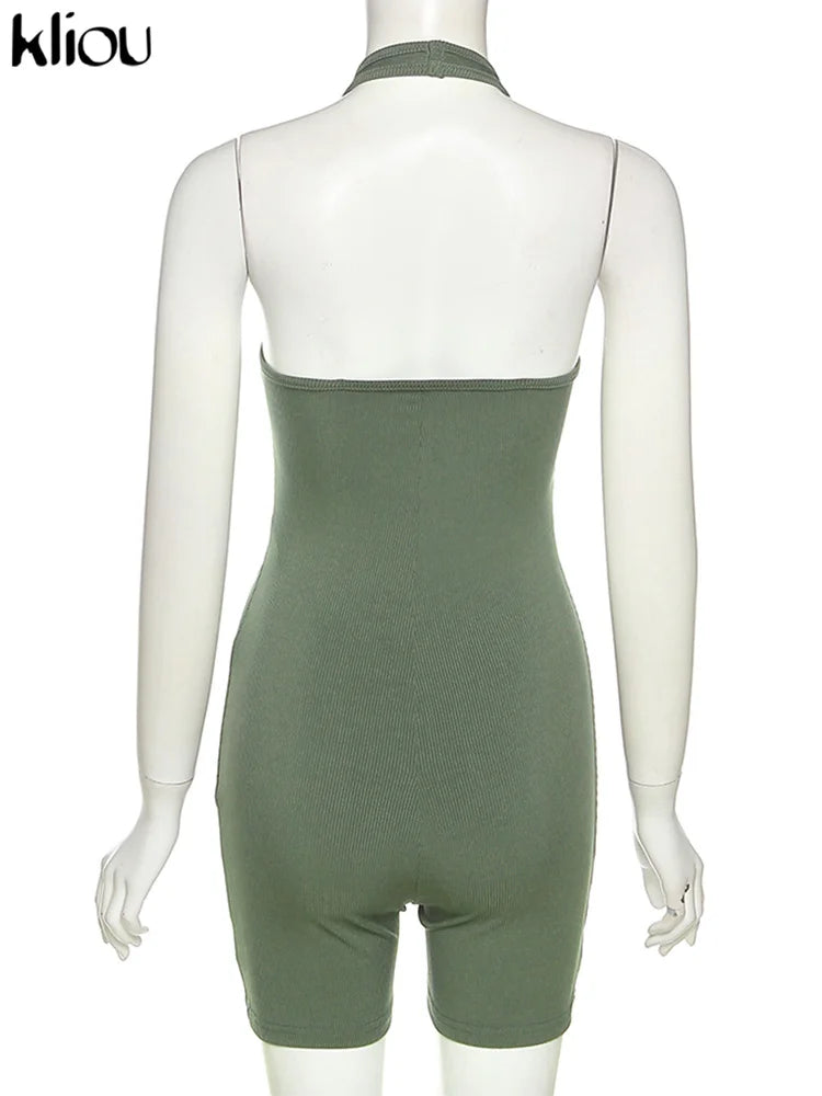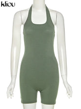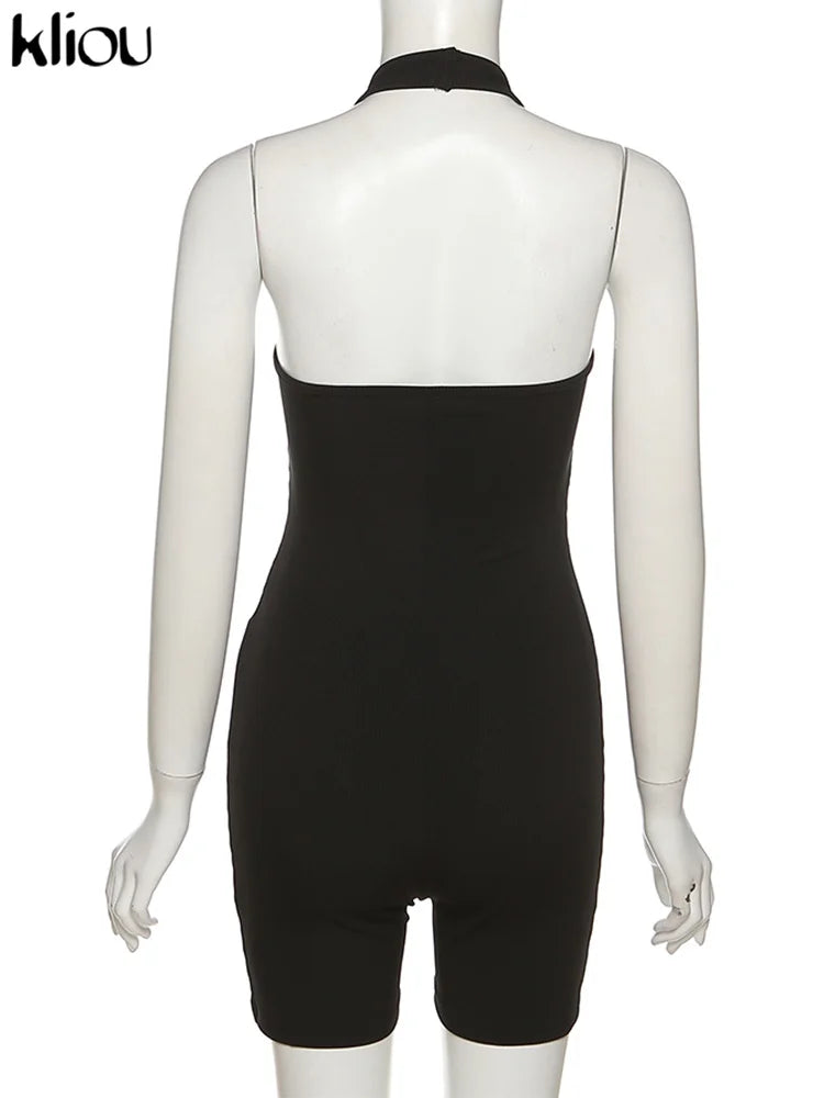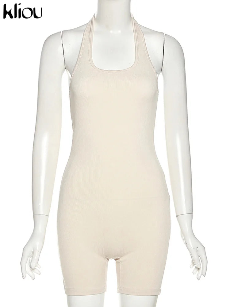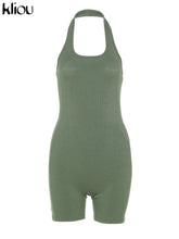 Kliou Striped Sporty Workout Halter Rompers Women Casual Active Wear Backless Sleeveless Playsuit Athleisure Biker Playsuits