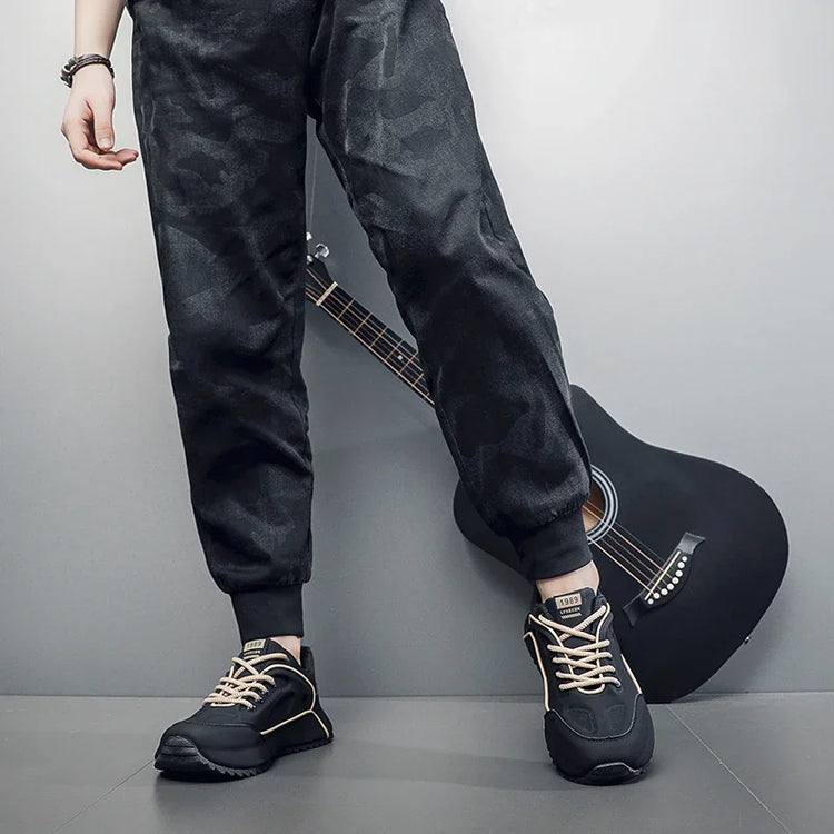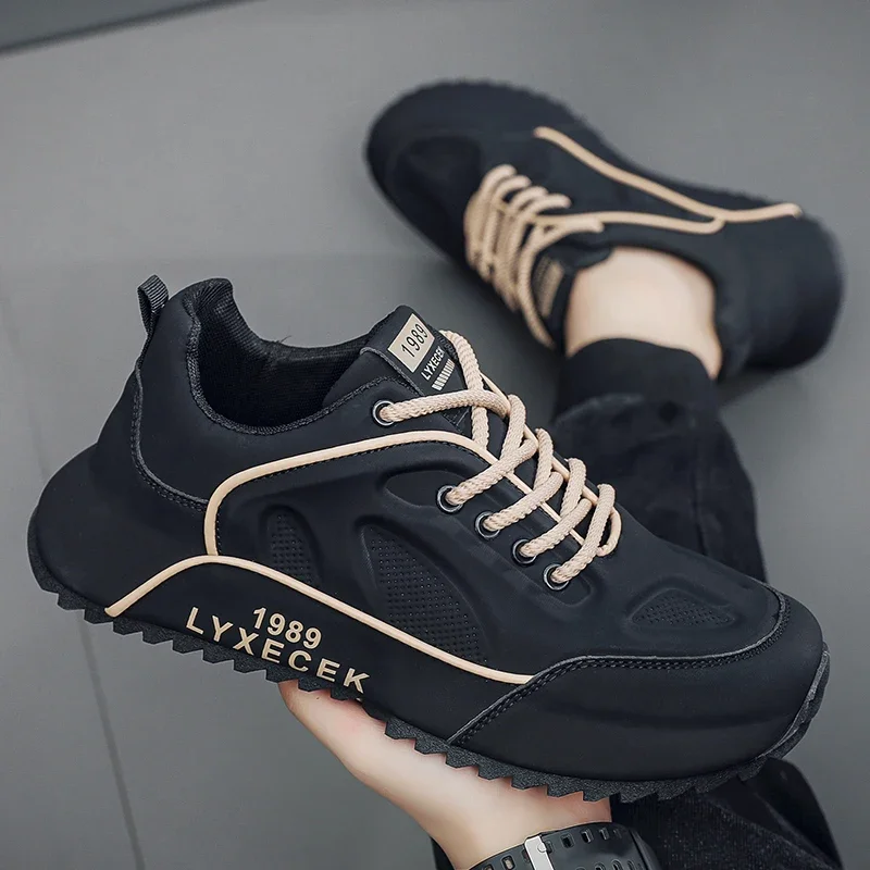 Leisure sports shoes men's new increase thick sole non-slip vulcanized running bag with breathable spring and autumn men's shoes