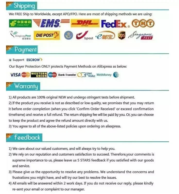 • Delivery times may vary depending on carrier delays, customs clearance, or factors beyond our control. We are not liable for any delays once the package leaves our warehouse.