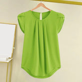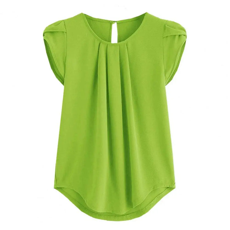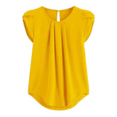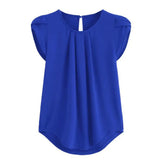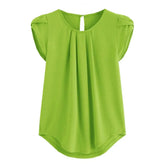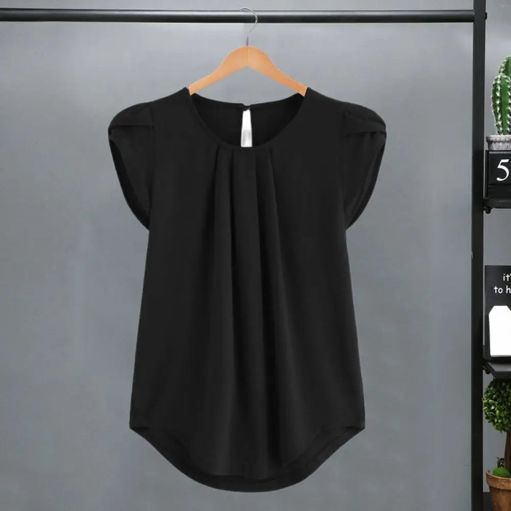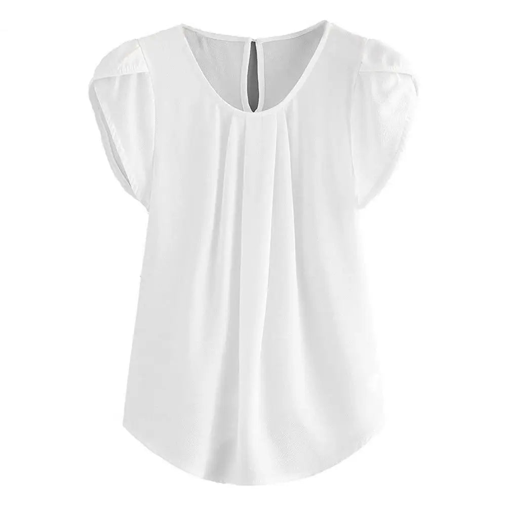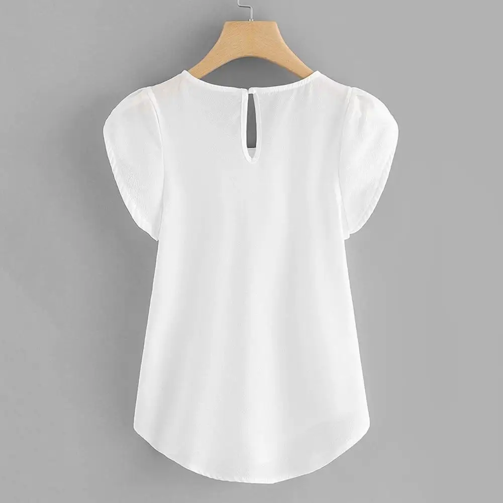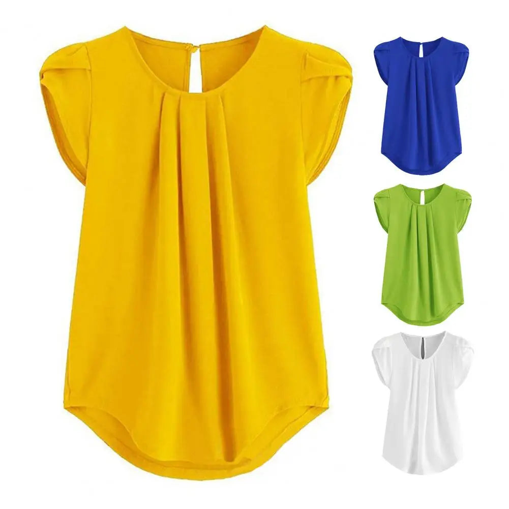 Loose Fit Shirt Stylish Women's Summer Tops Petal Sleeve Pleated T-shirt Solid Color Round Neck Blouse Casual for Large