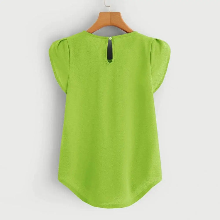 Features: Loose Fit, Solid Color, Petal Short Sleeve