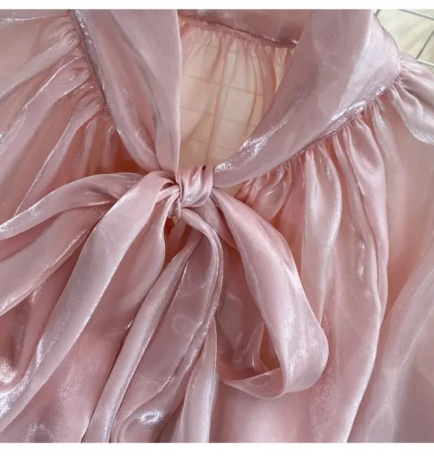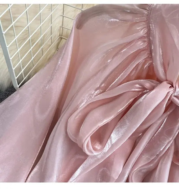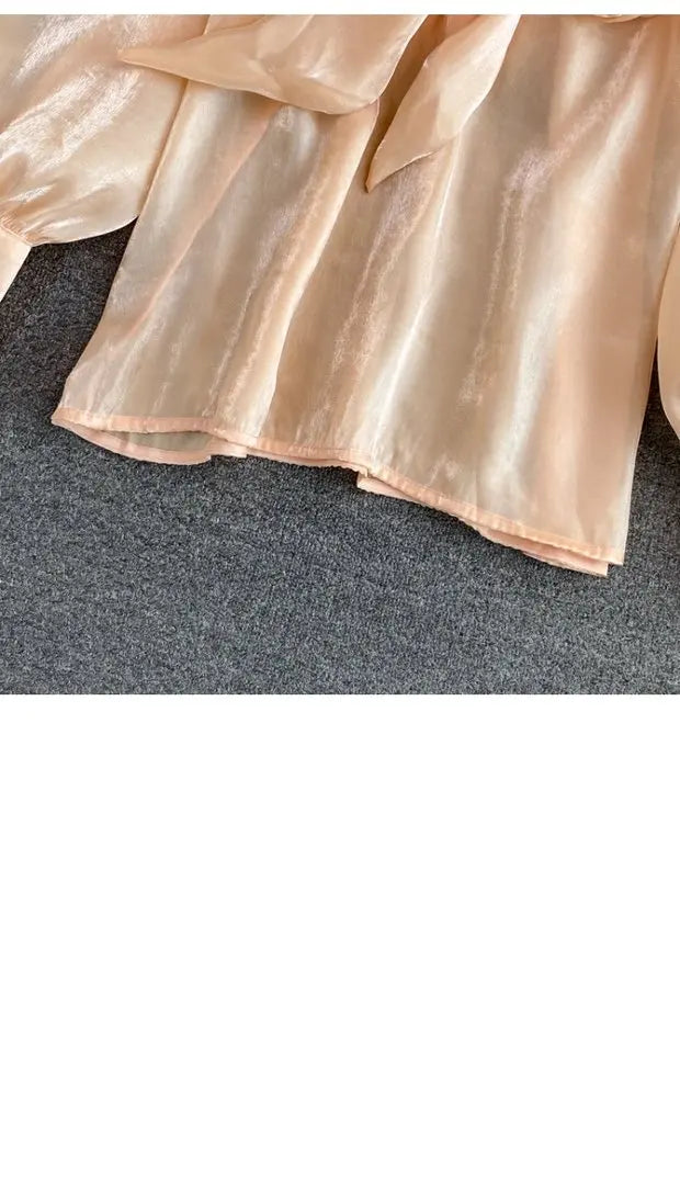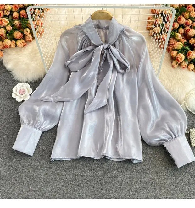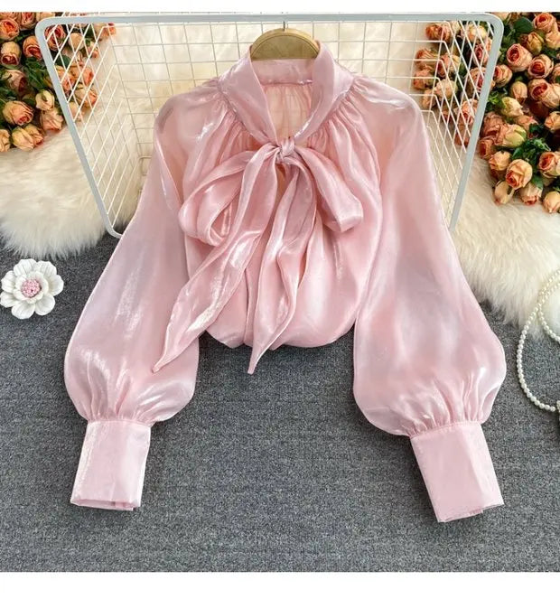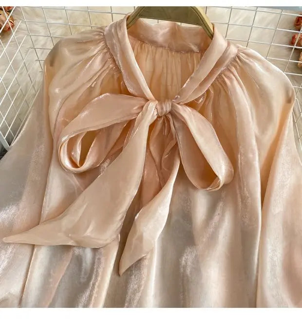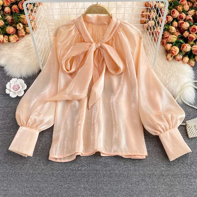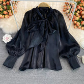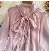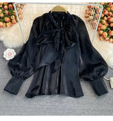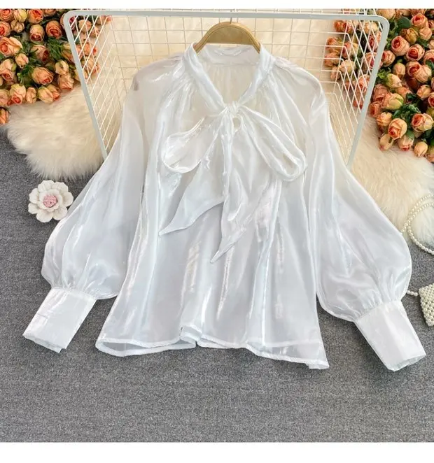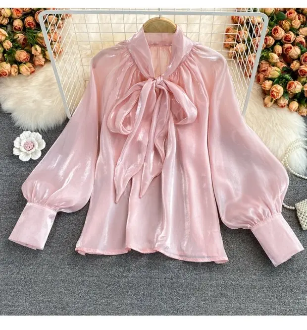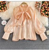 Loose Long Sve Knot irt Women's Sle Autumn New Arrival Fairy T Faionable Top Korean Version V-ne Lant...