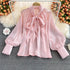 Loose Long Sve Knot irt Women's Sle Autumn New Arrival Fairy T Faionable Top Korean Version V-ne Lant...