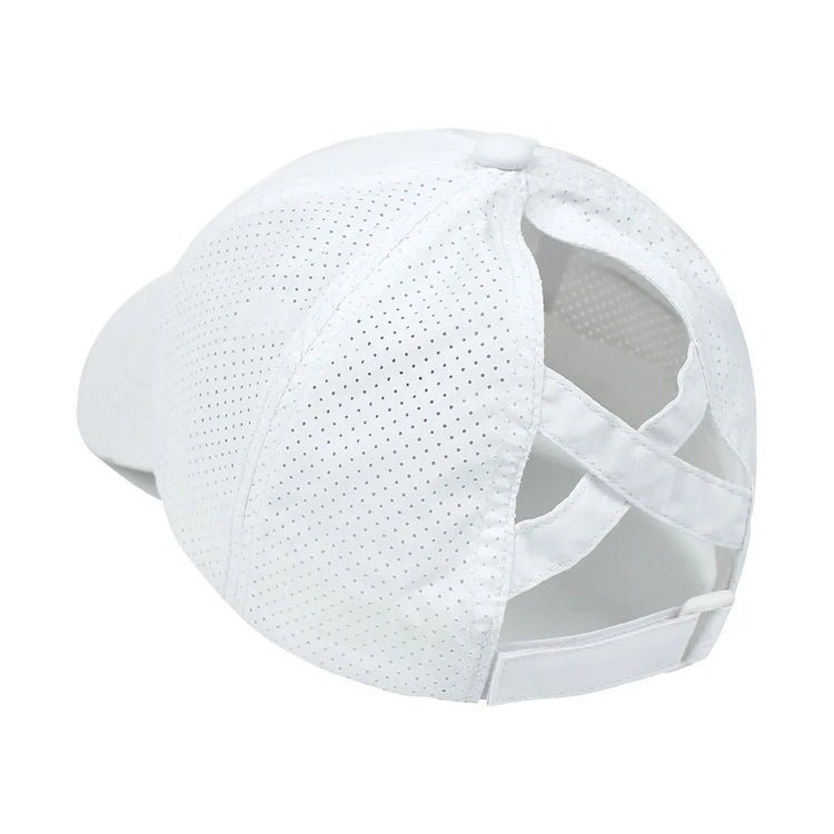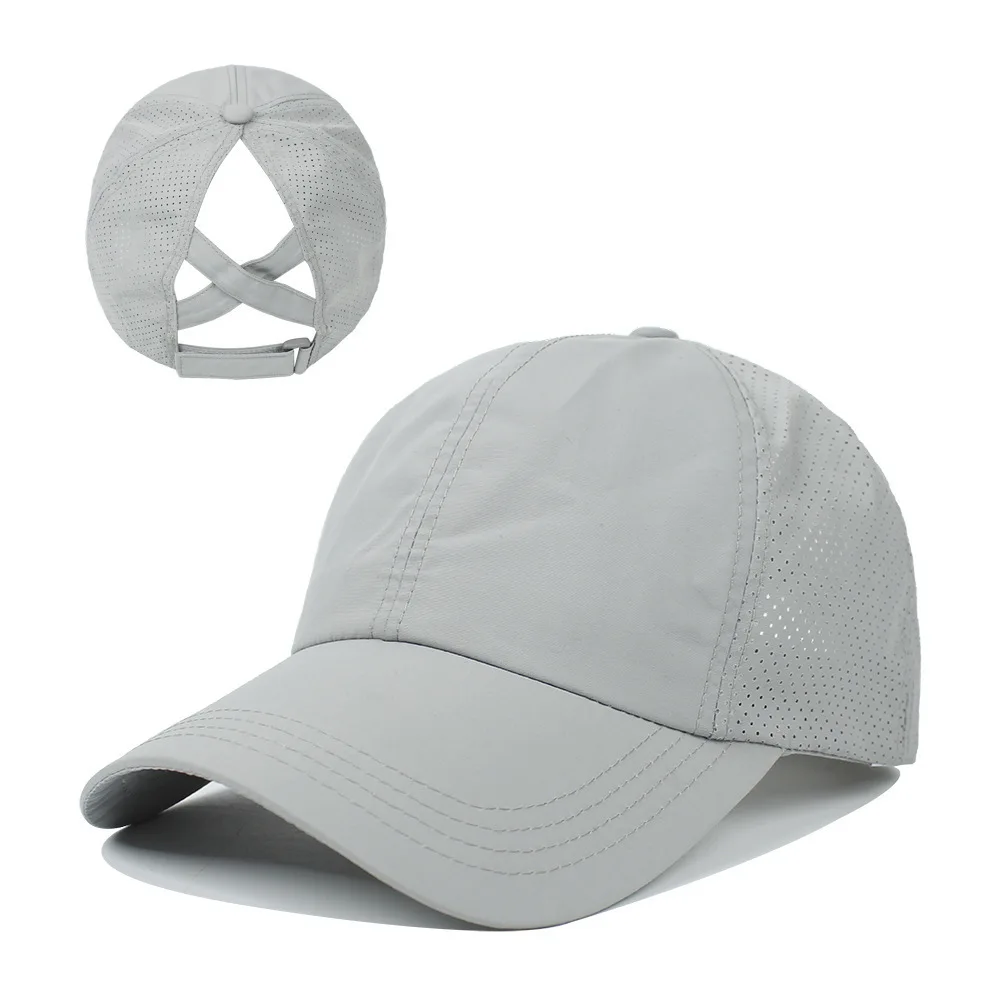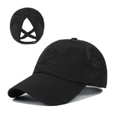 Summer Solid Color Baseball Cap Women's Athleisure Cross Ponytail Hat Mesh Quick-Drying Cap Visor Hat