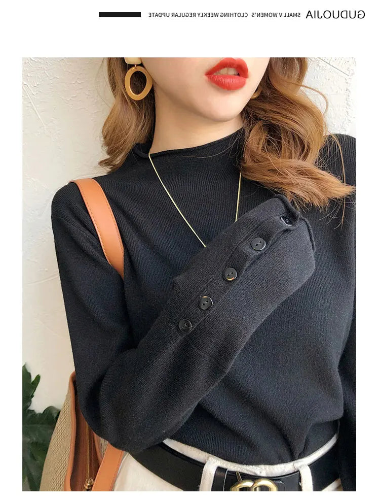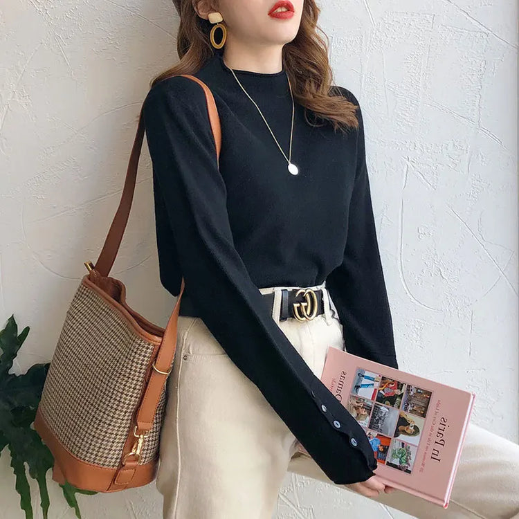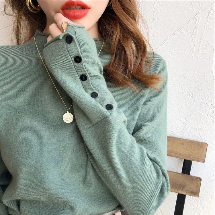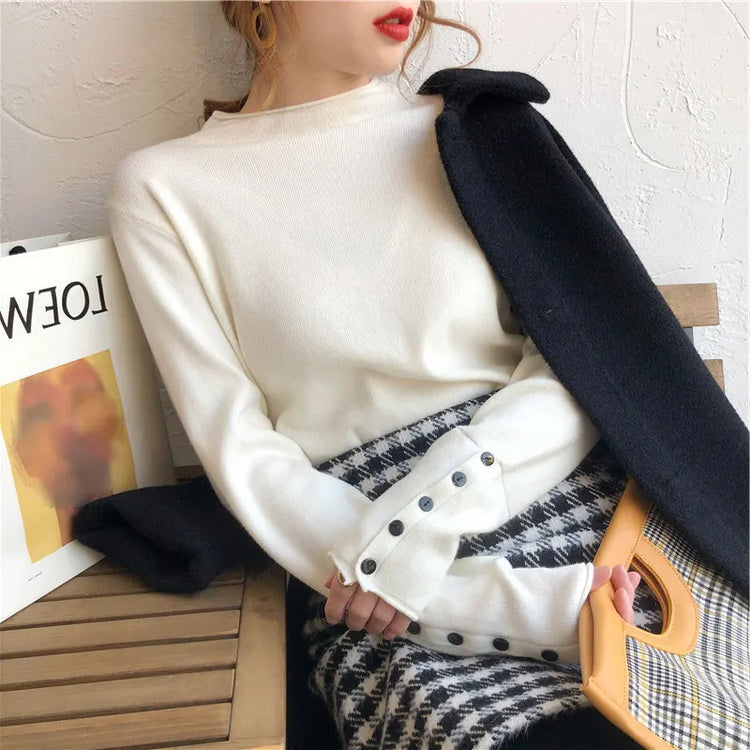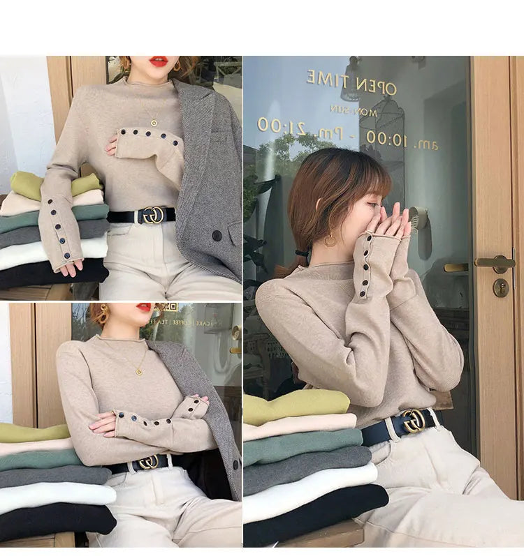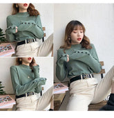 Sweater Women Knitted Pullover 2024 Autumn Winter Thick Sweater Long Sleeve Turtleneck Button Jumper Soft Warm Pull Femme