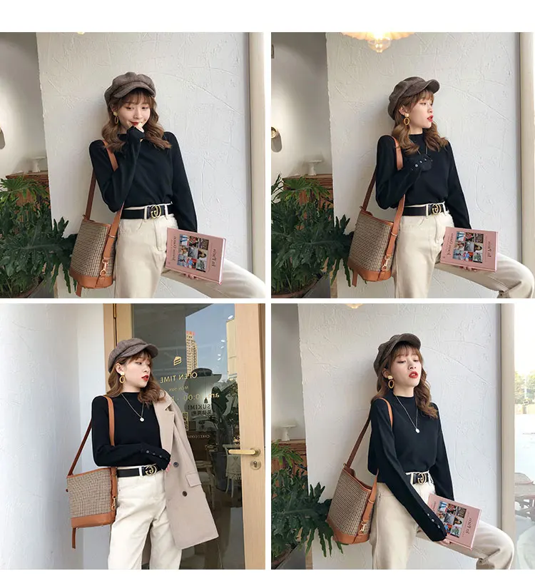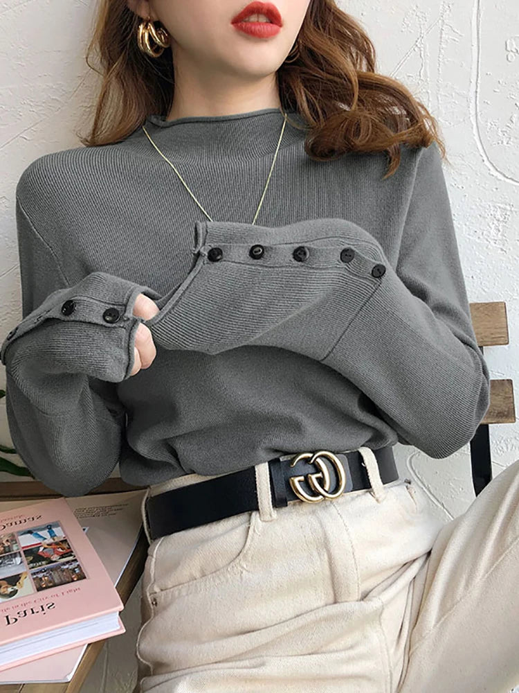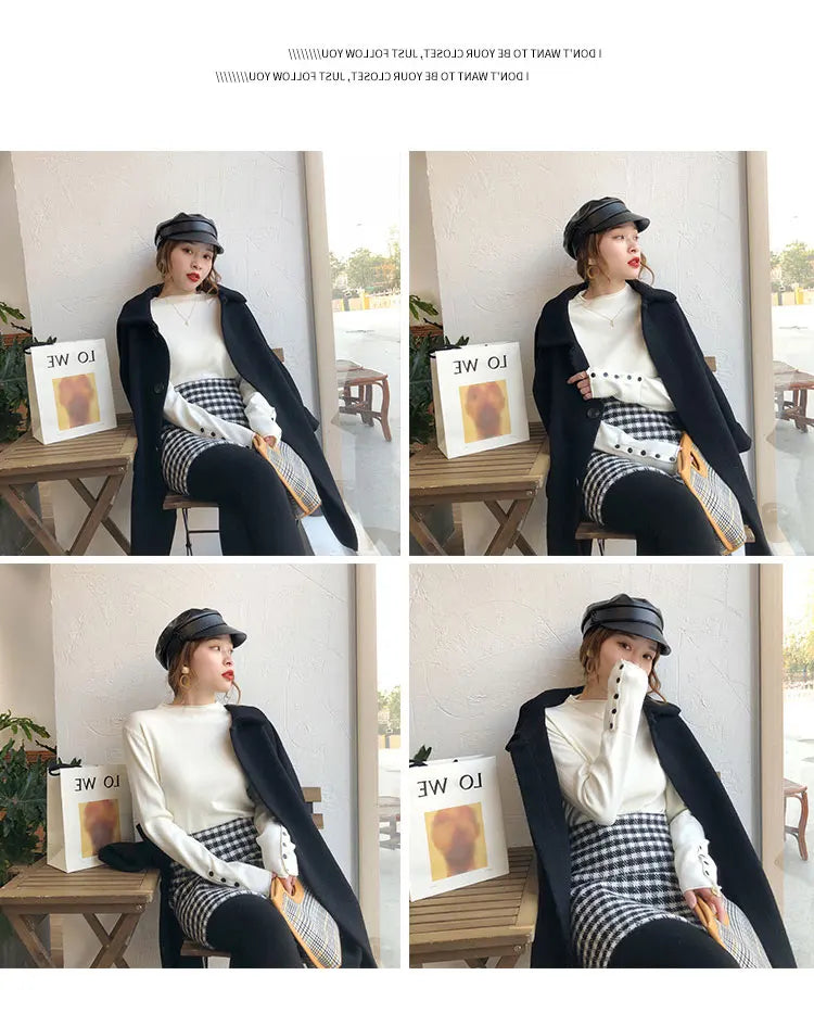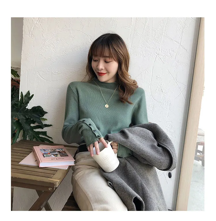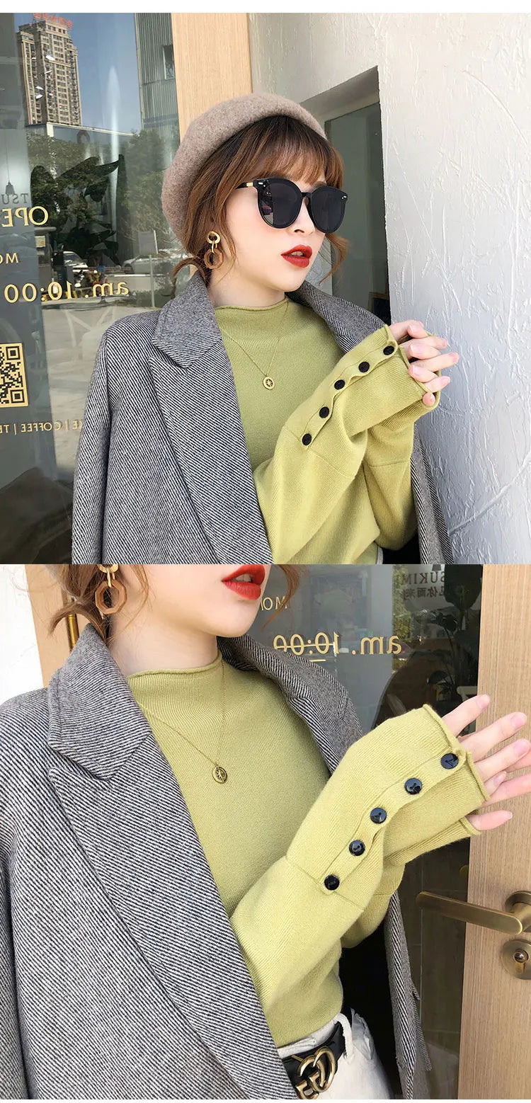Sweater Women Knitted Pullover 2024 Autumn Winter Thick Sweater Long Sleeve Turtleneck Button Jumper Soft Warm Pull Femme