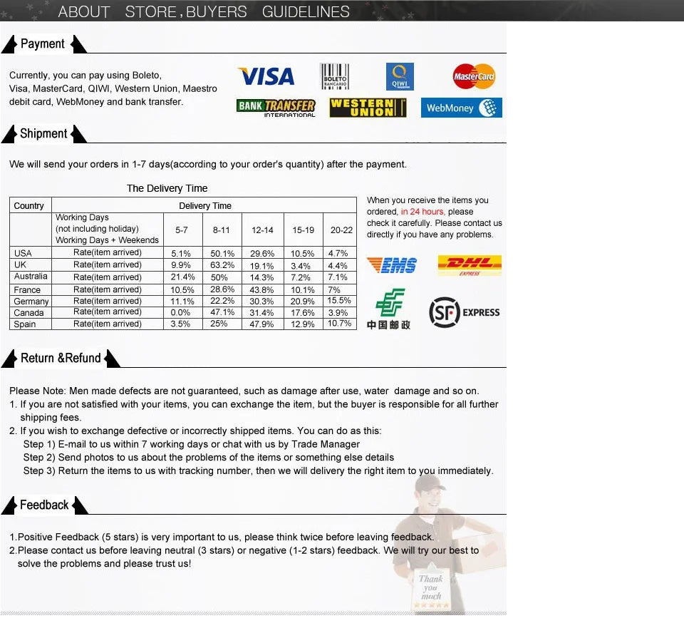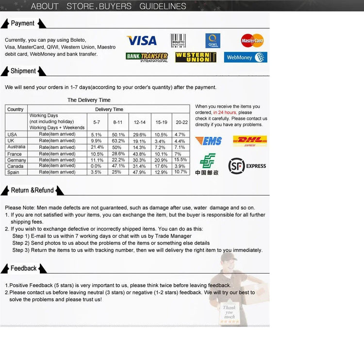 • Please note that processing time may vary during peak seasons or promotional periods, and we cannot guarantee specific delivery times.