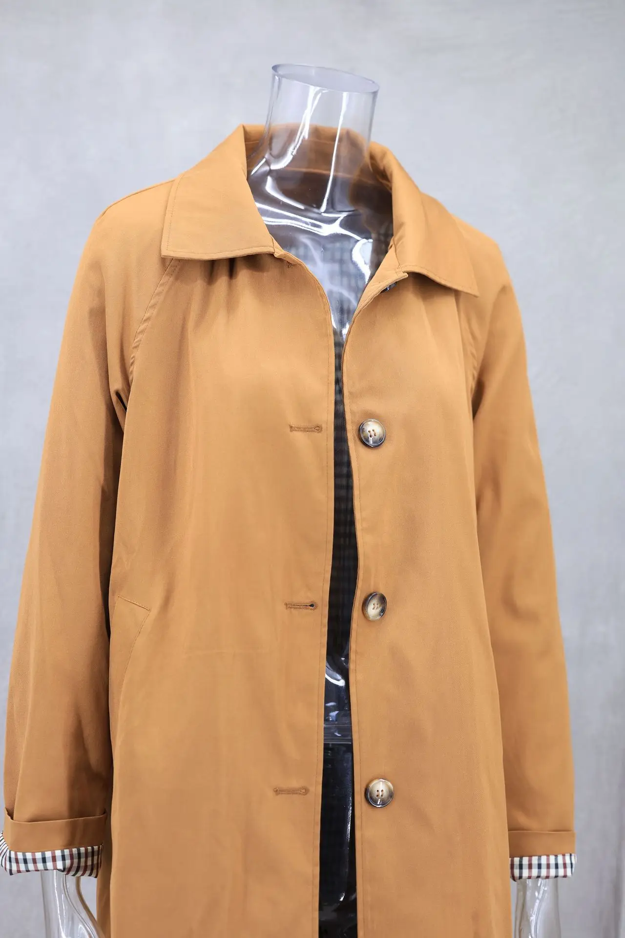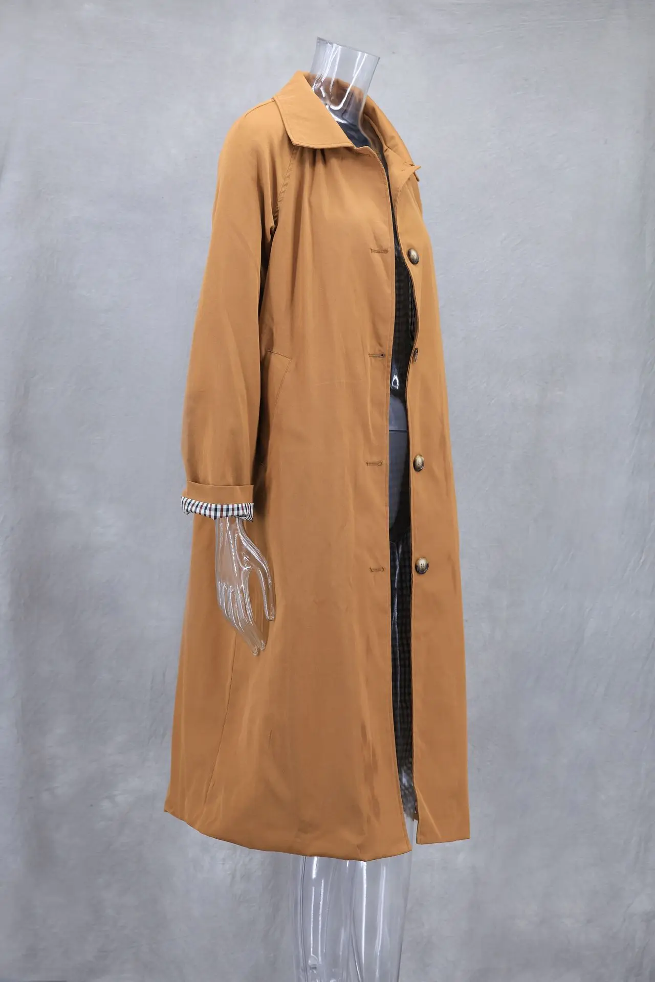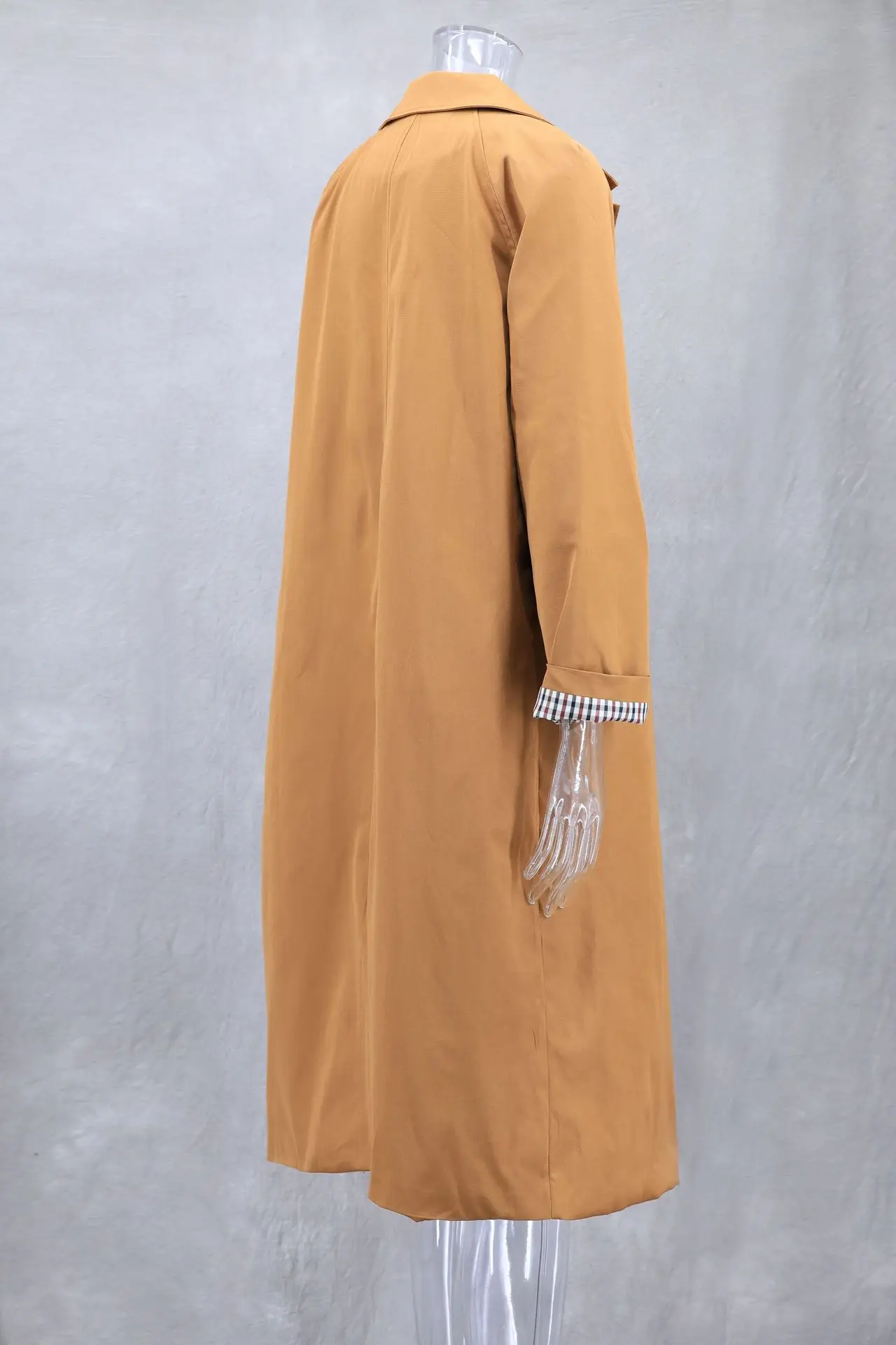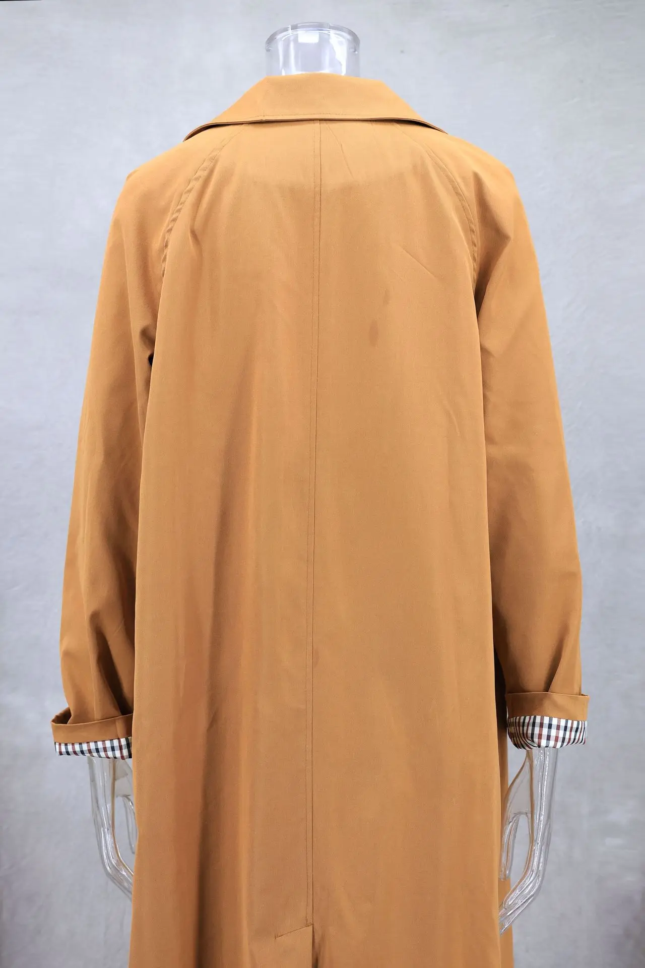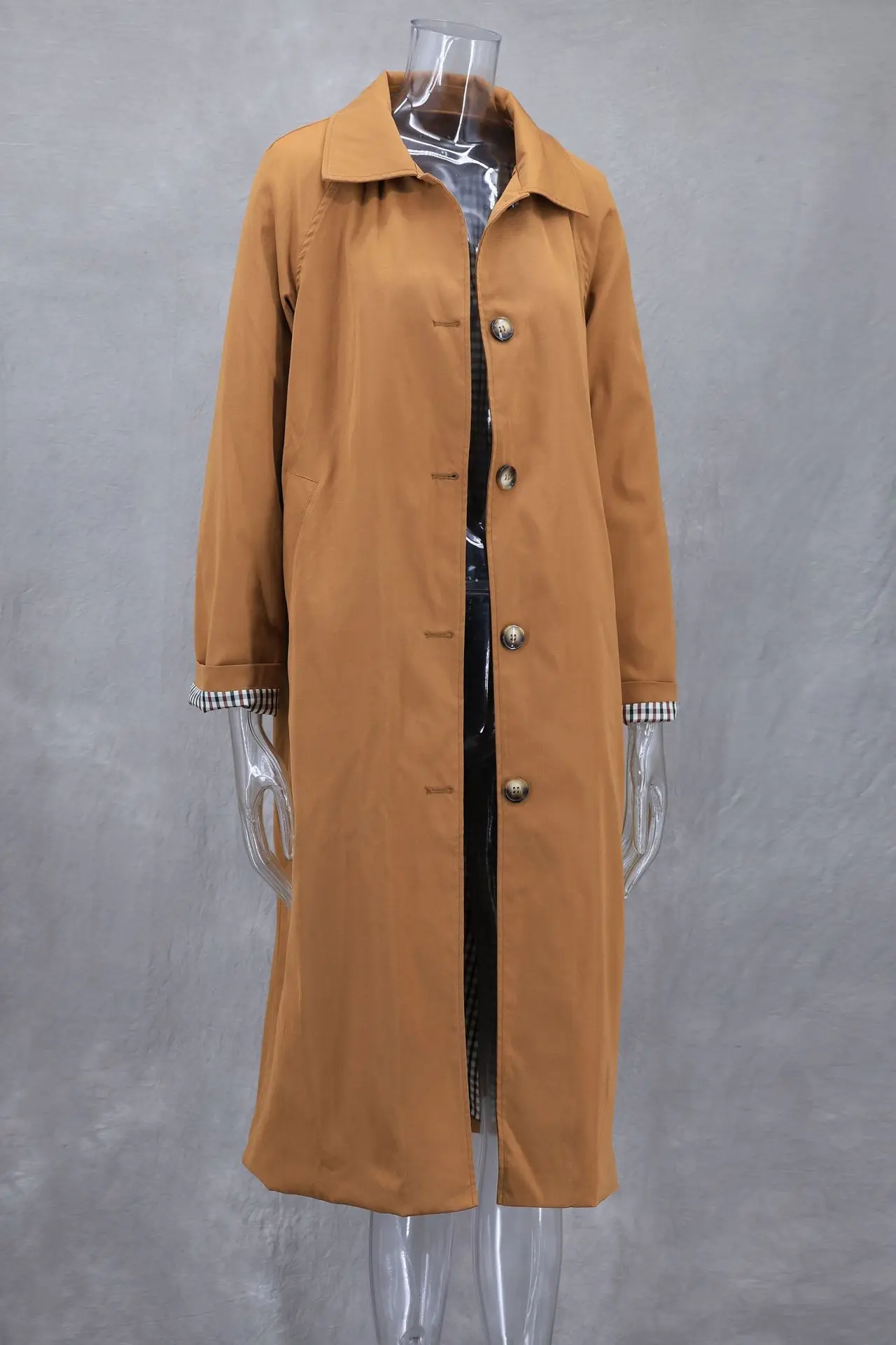Vintage Trench Coat Single Breasted Plaid Chic Outerwears Turn Down Collar Fashion Long Windbreaker Women's Autumn Clothes 2025