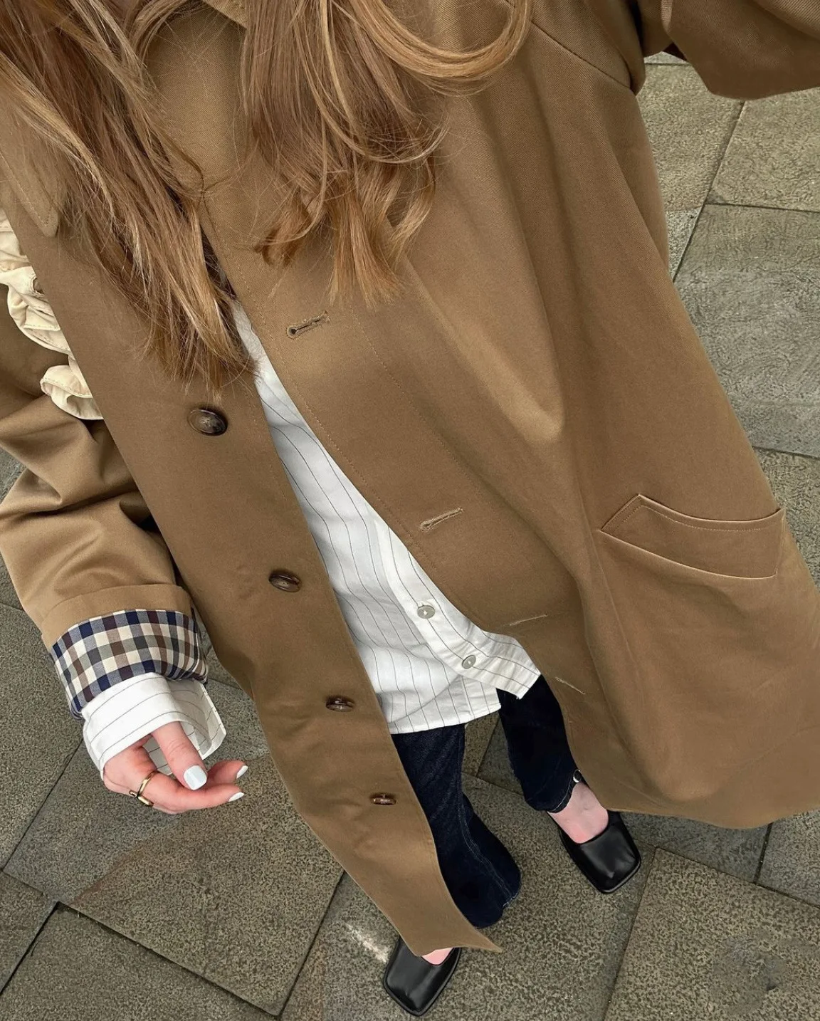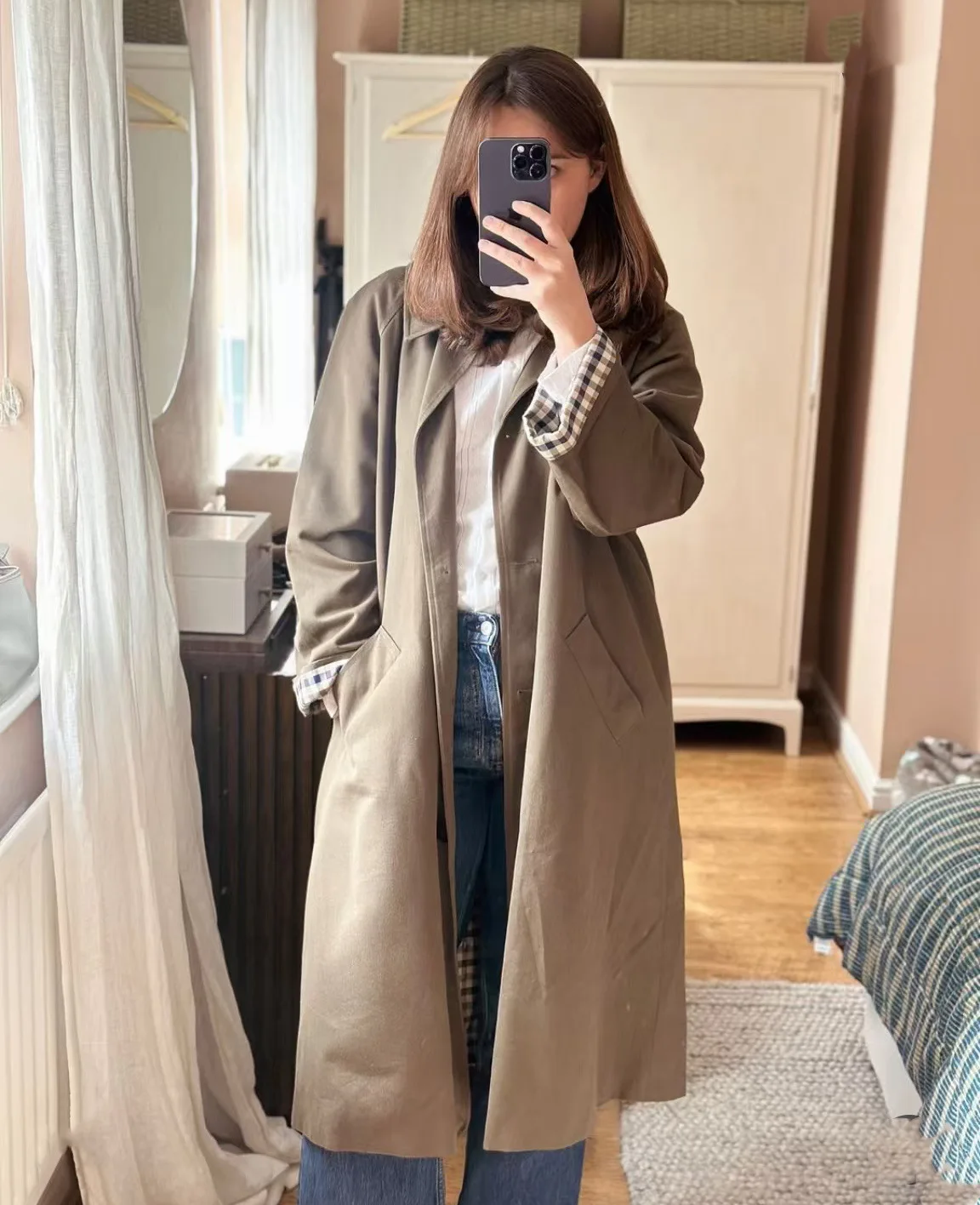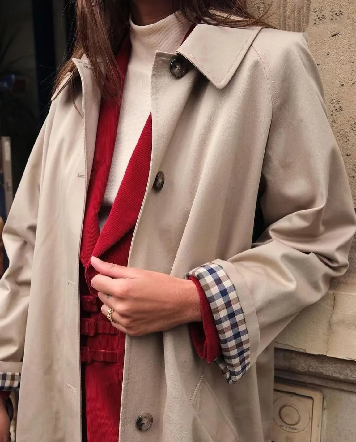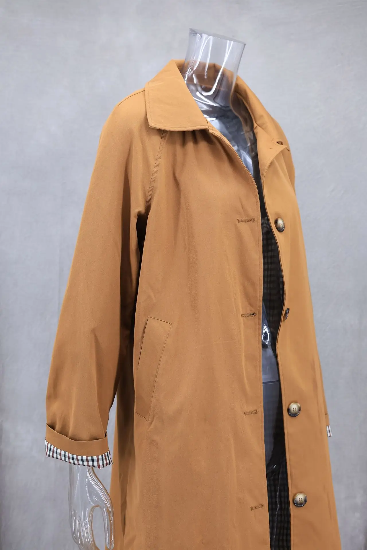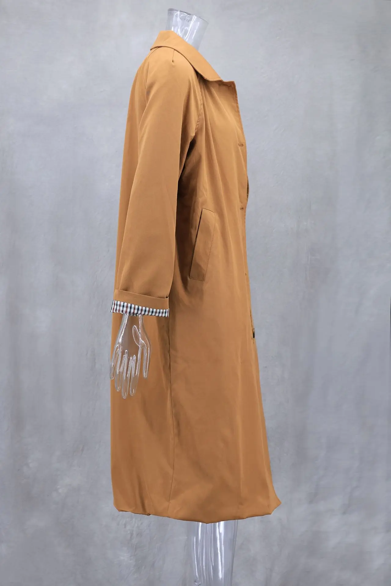 Vintage Trench Coat Single Breasted Plaid Chic Outerwears Turn Down Collar Fashion Long Windbreaker Women's Autumn Clothes 2025
