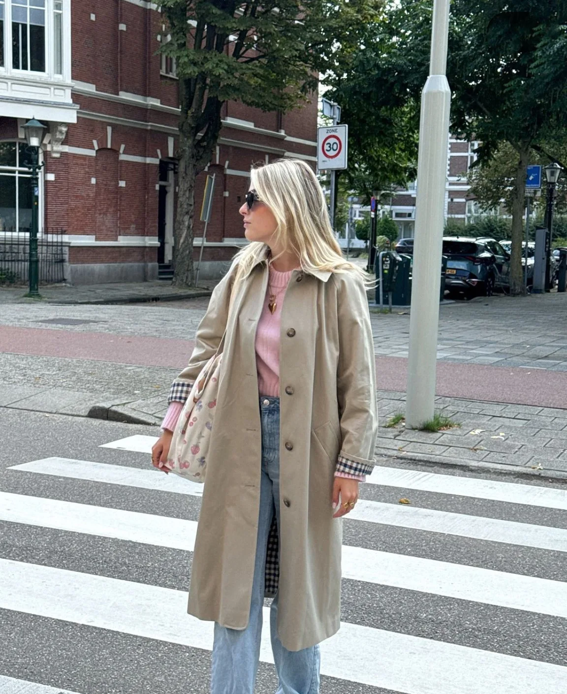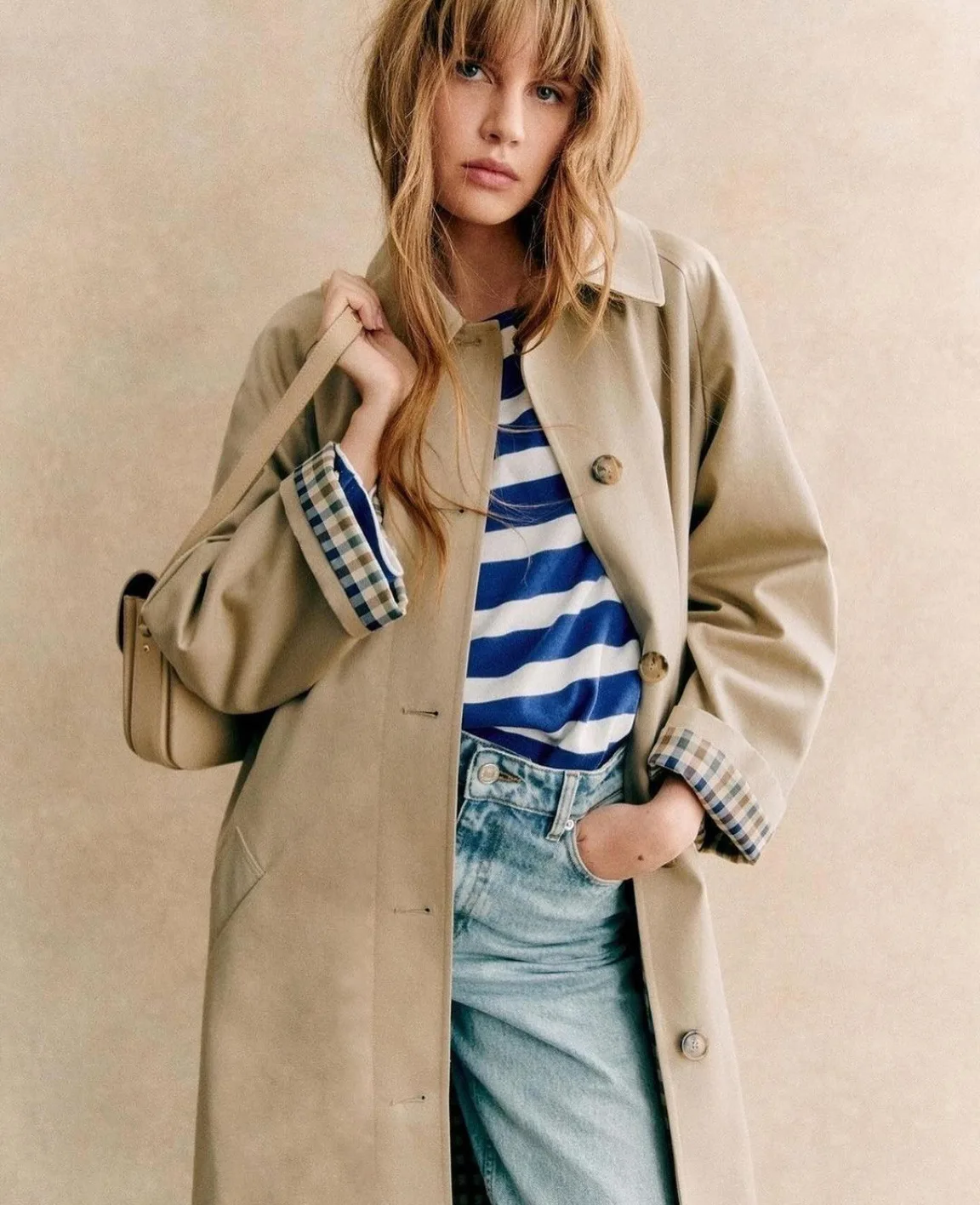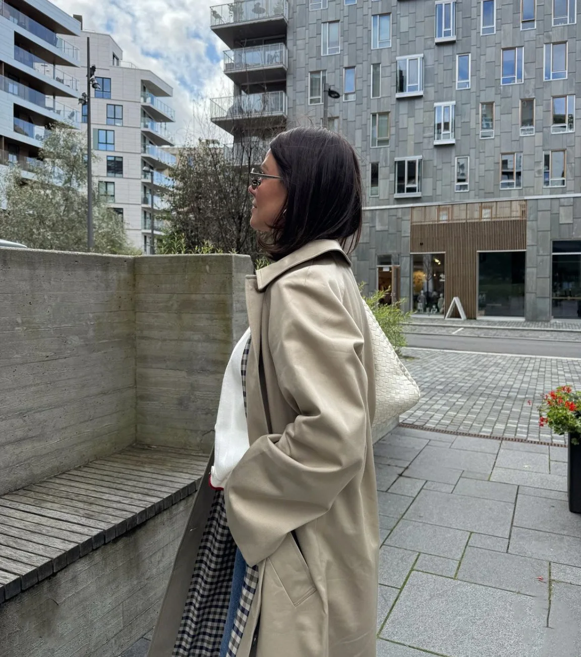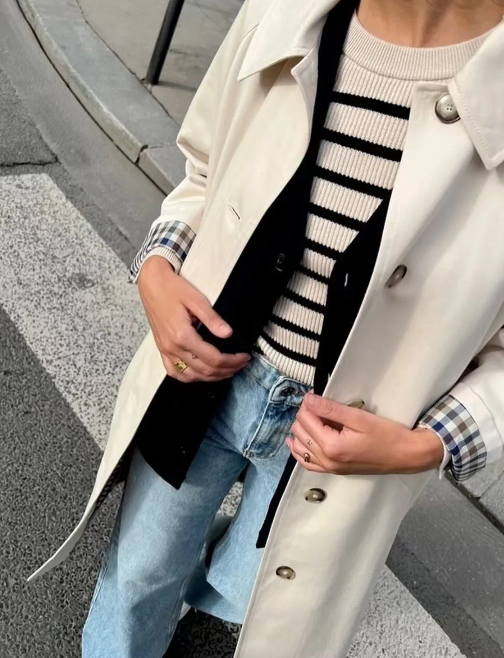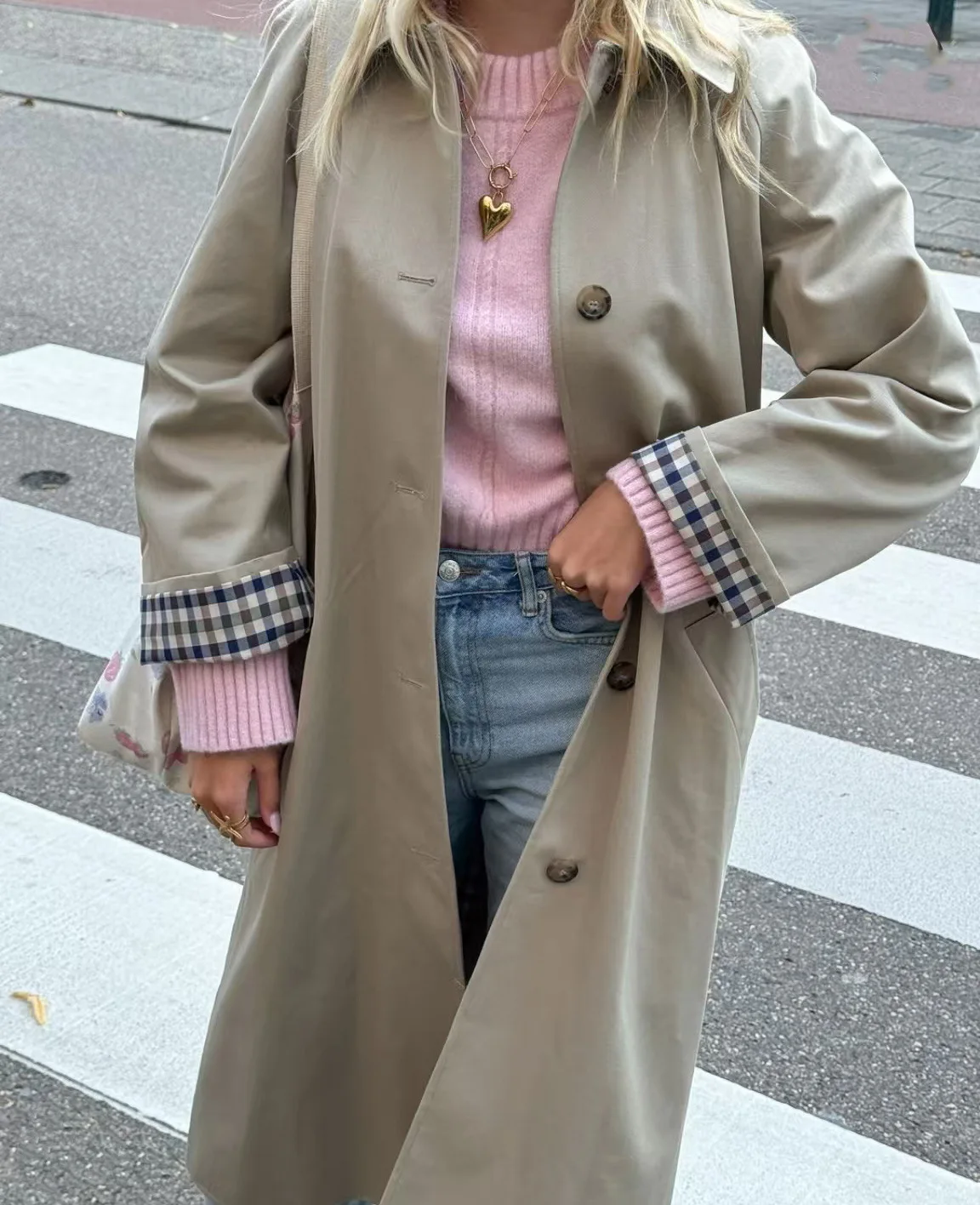 Vintage Trench Coat Single Breasted Plaid Chic Outerwears Turn Down Collar Fashion Long Windbreaker Women's Autumn Clothes 2025
