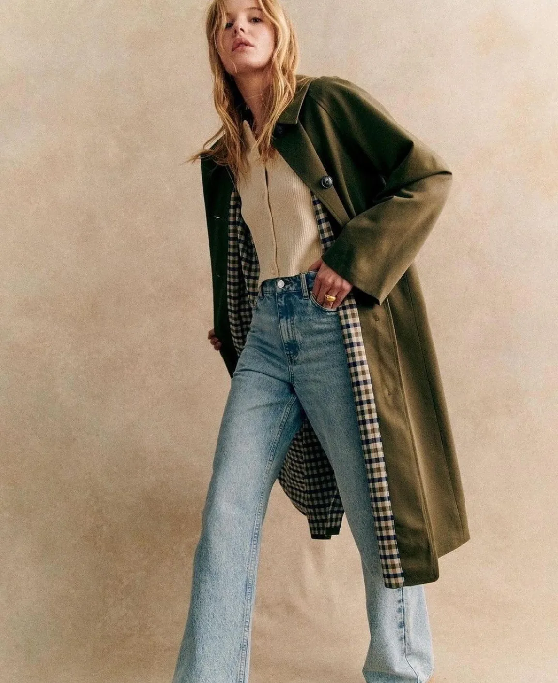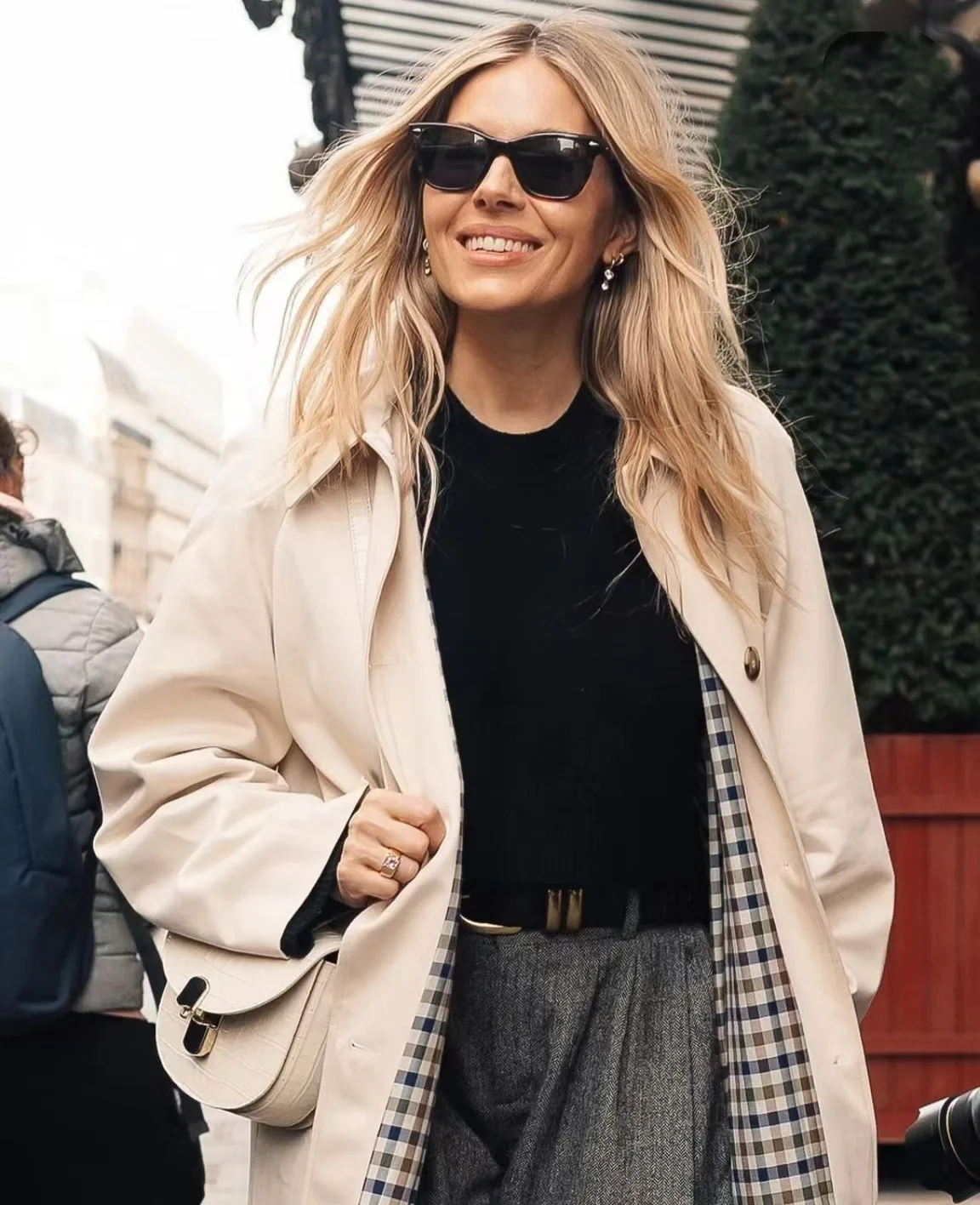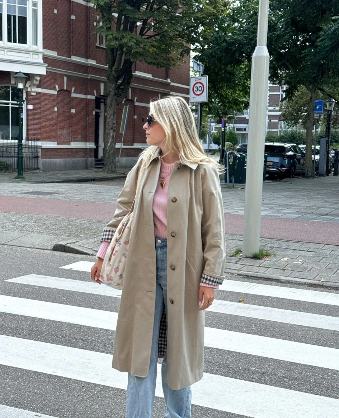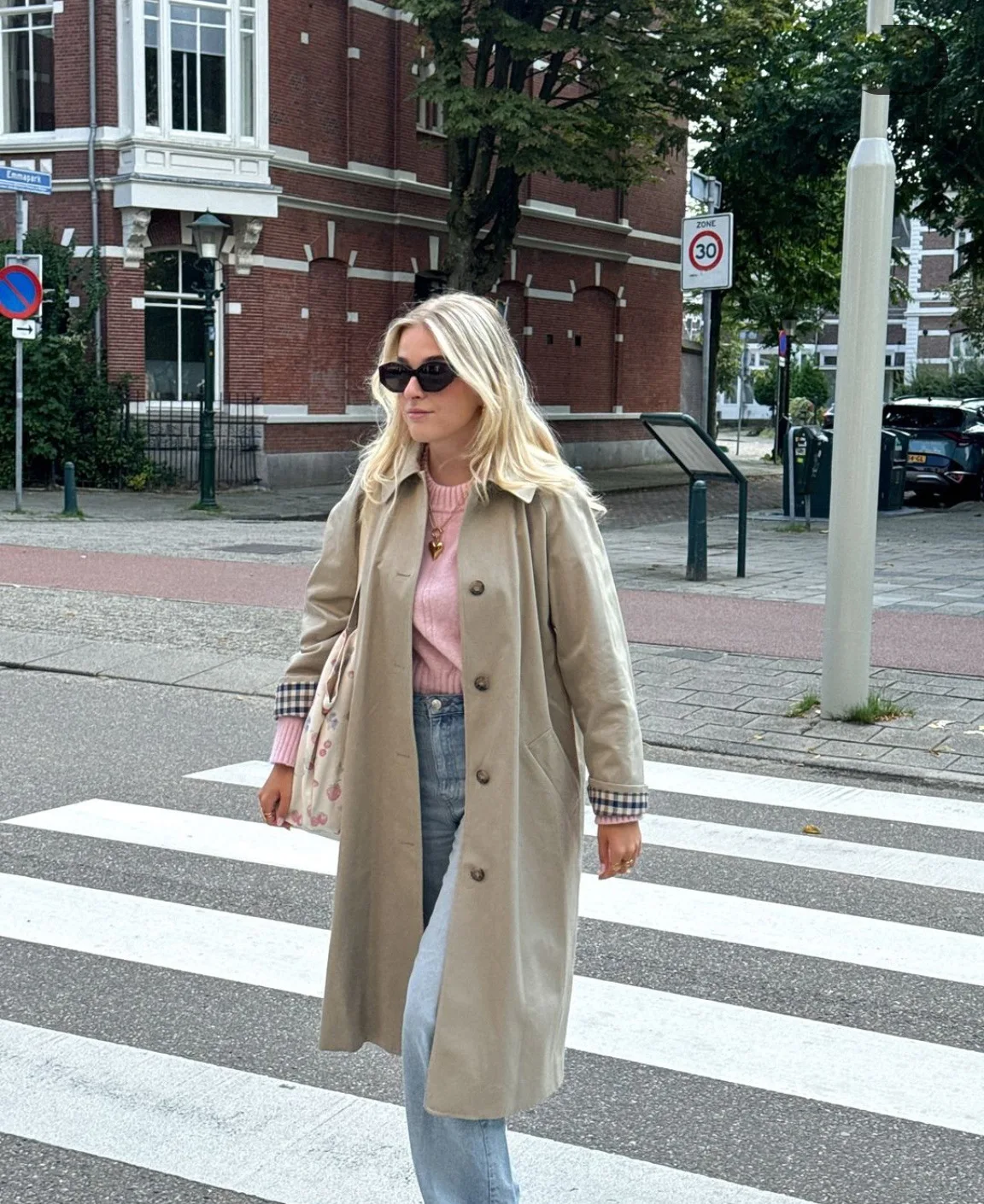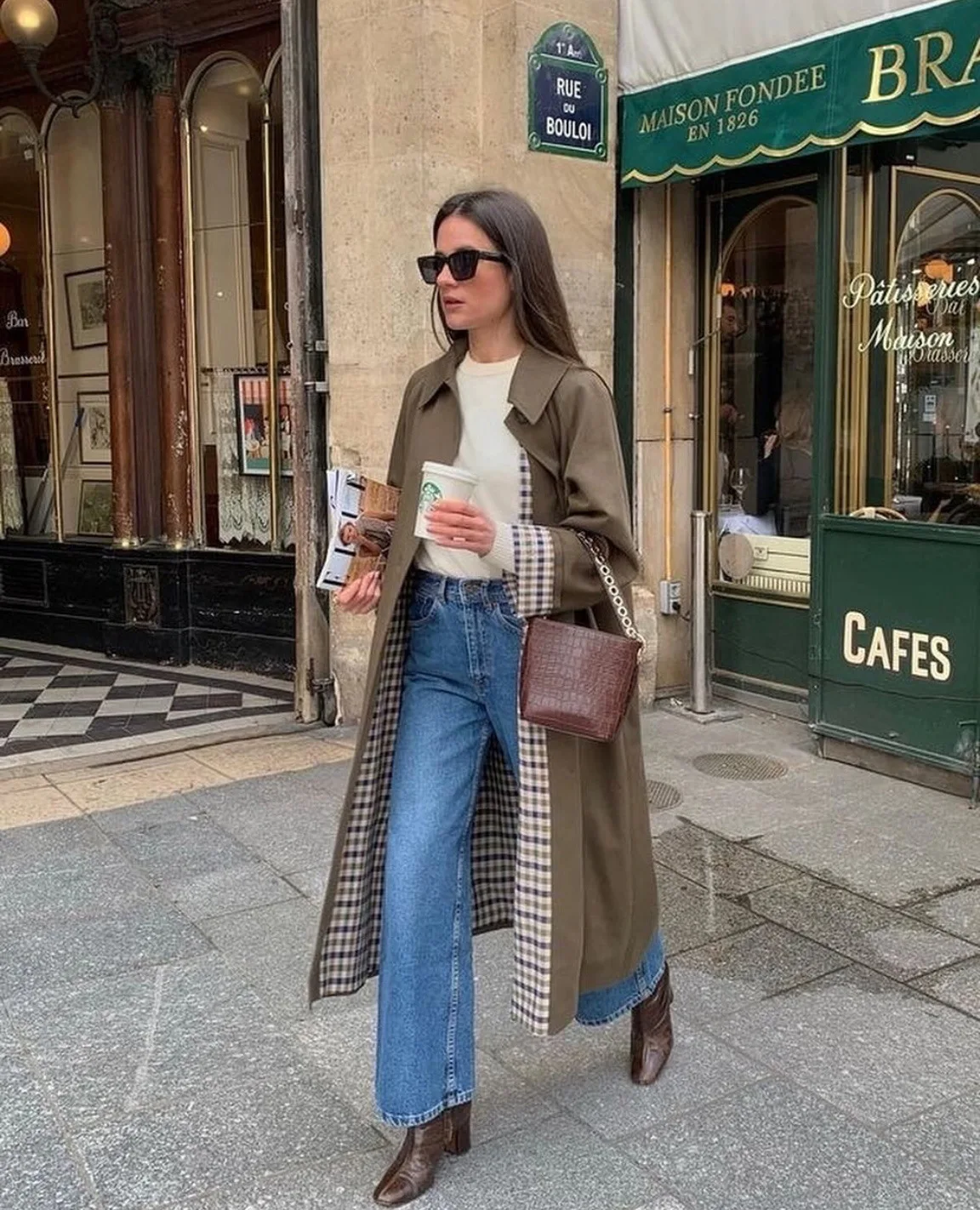 Vintage Trench Coat Single Breasted Plaid Chic Outerwears Turn Down Collar Fashion Long Windbreaker Women's Autumn Clothes 2025