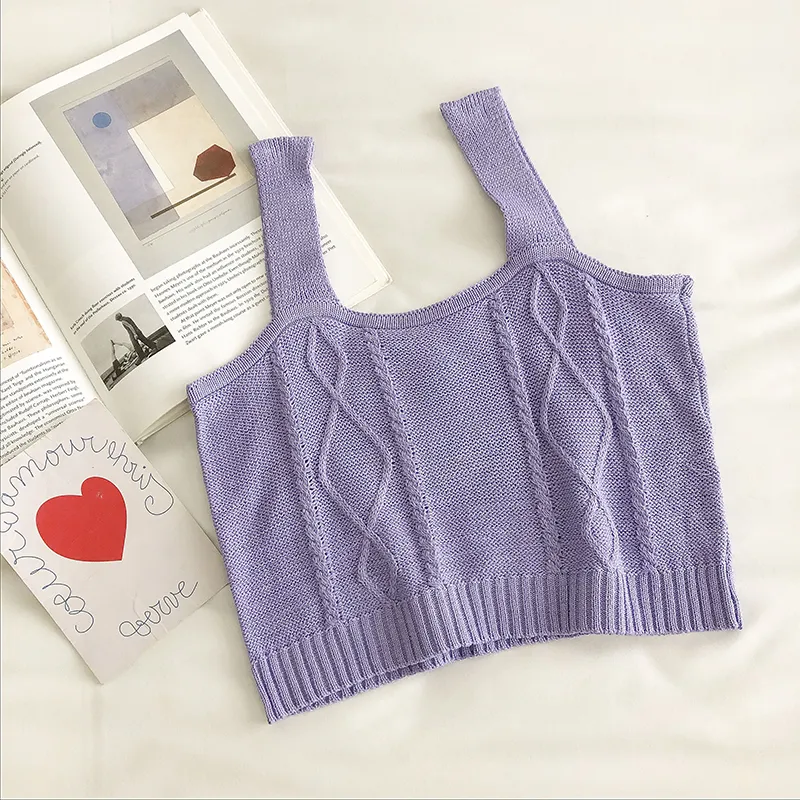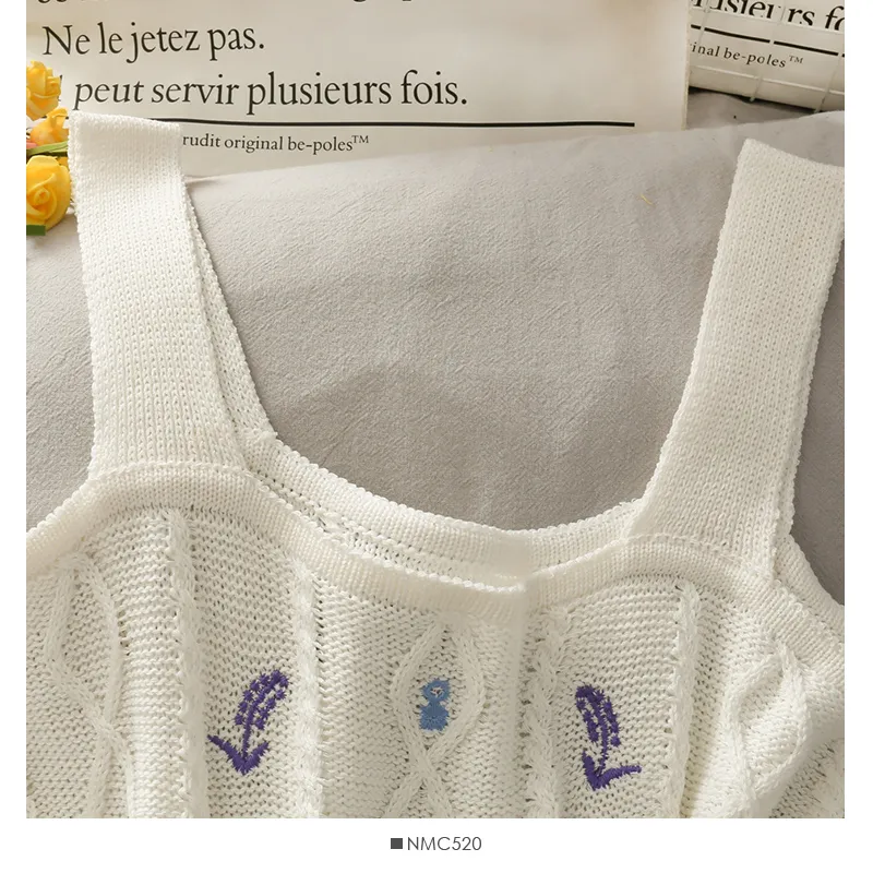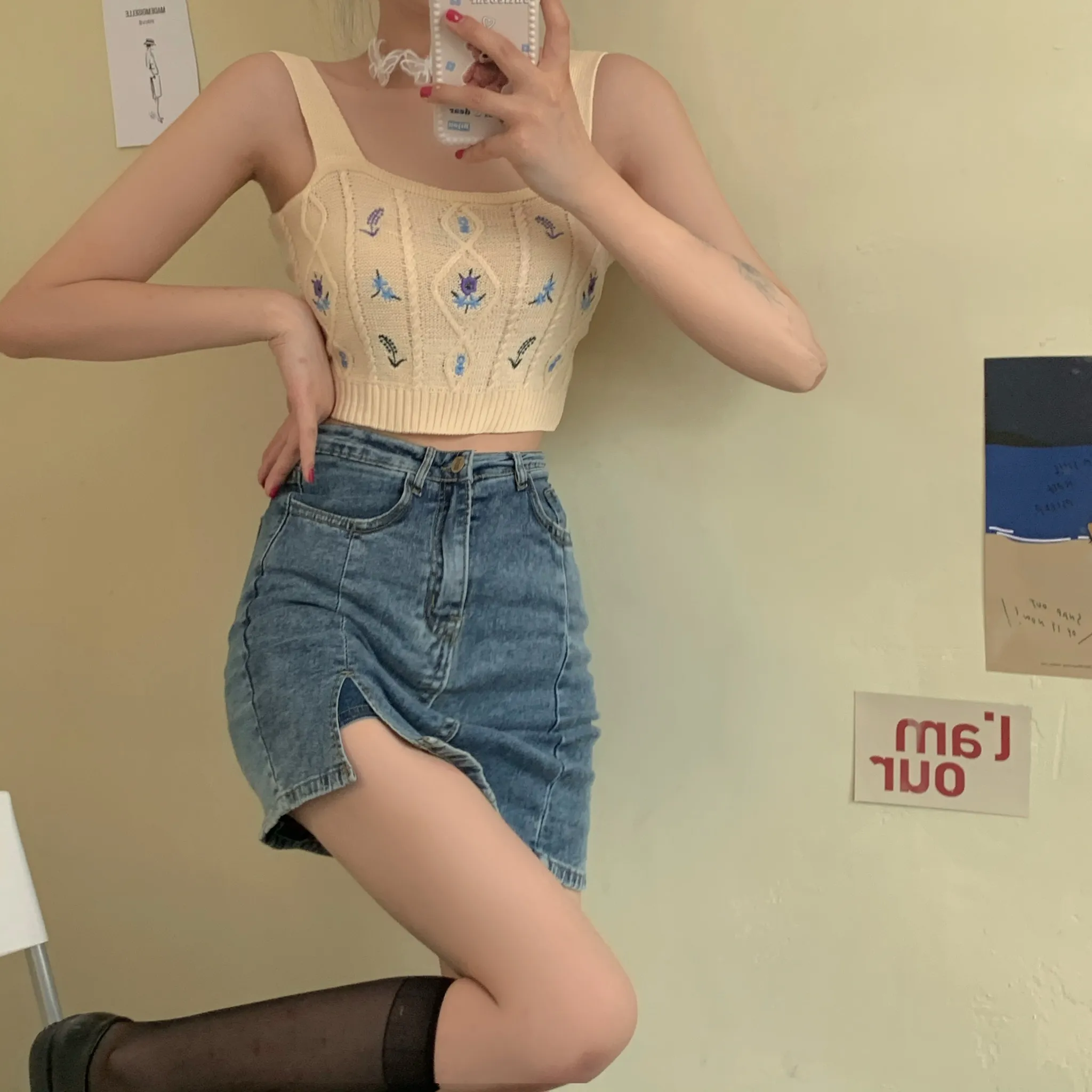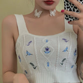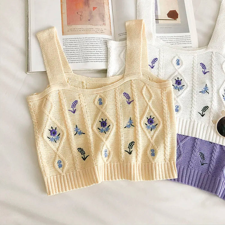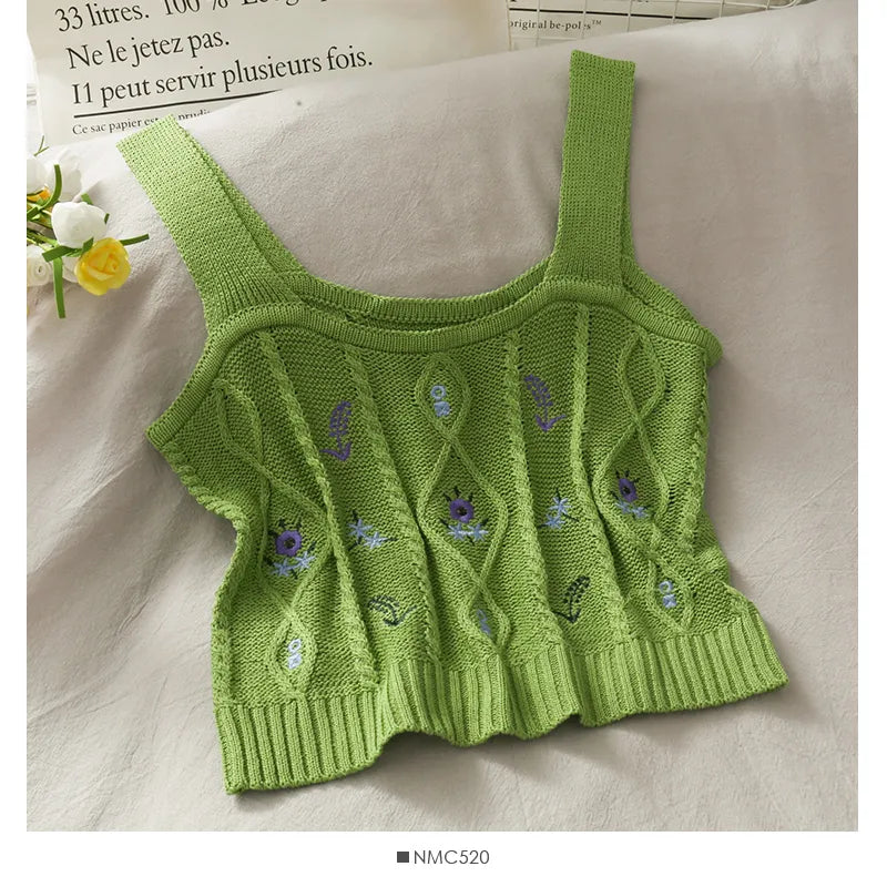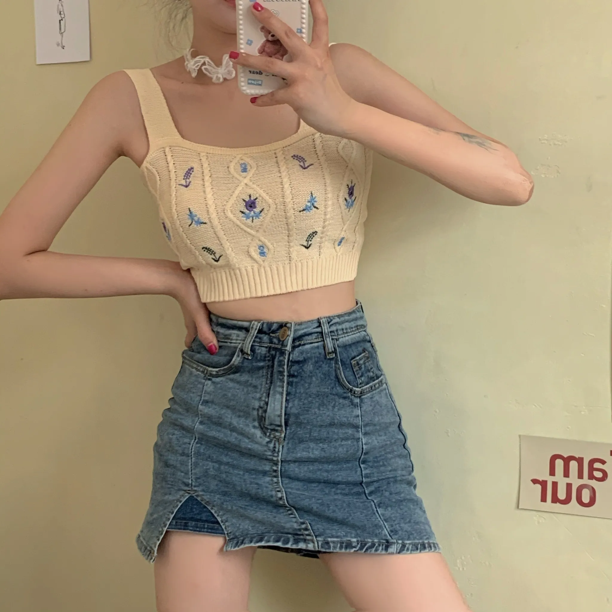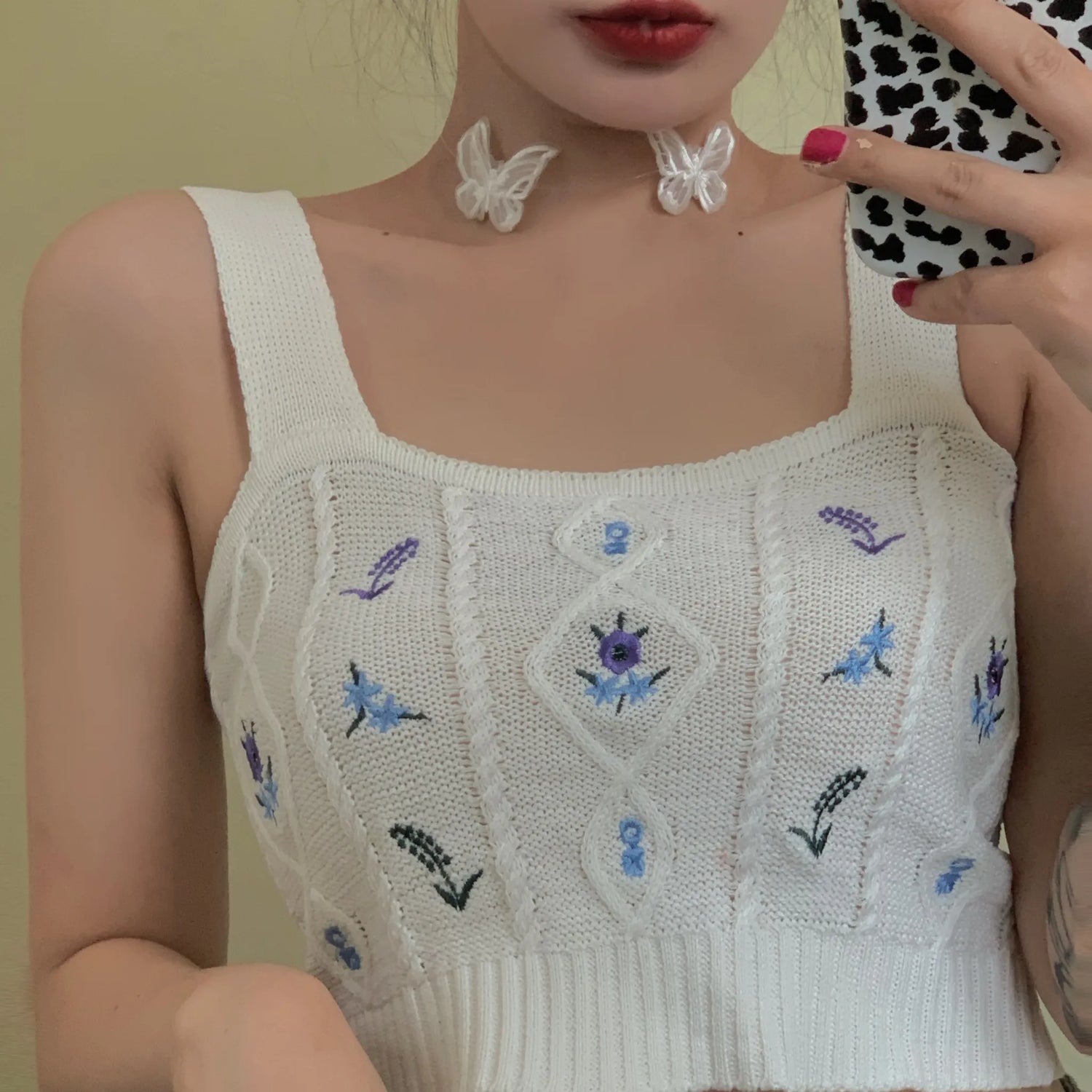 Women Knitted Flower Embroidery Sleeveless Crop Tops Women Tube Tops Casual Cute Tops Crop Tops Women Summer Ribbed Camisole
