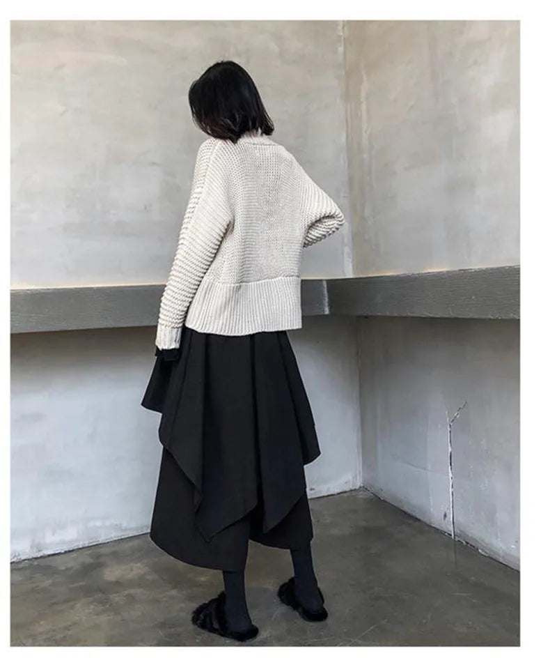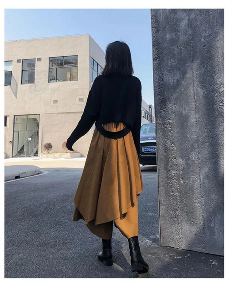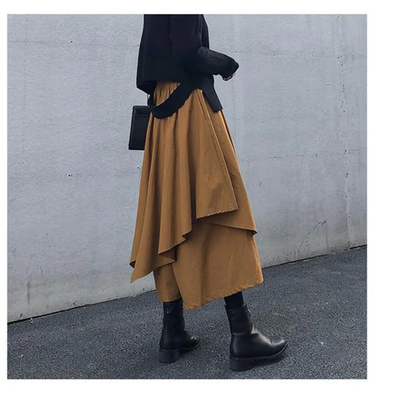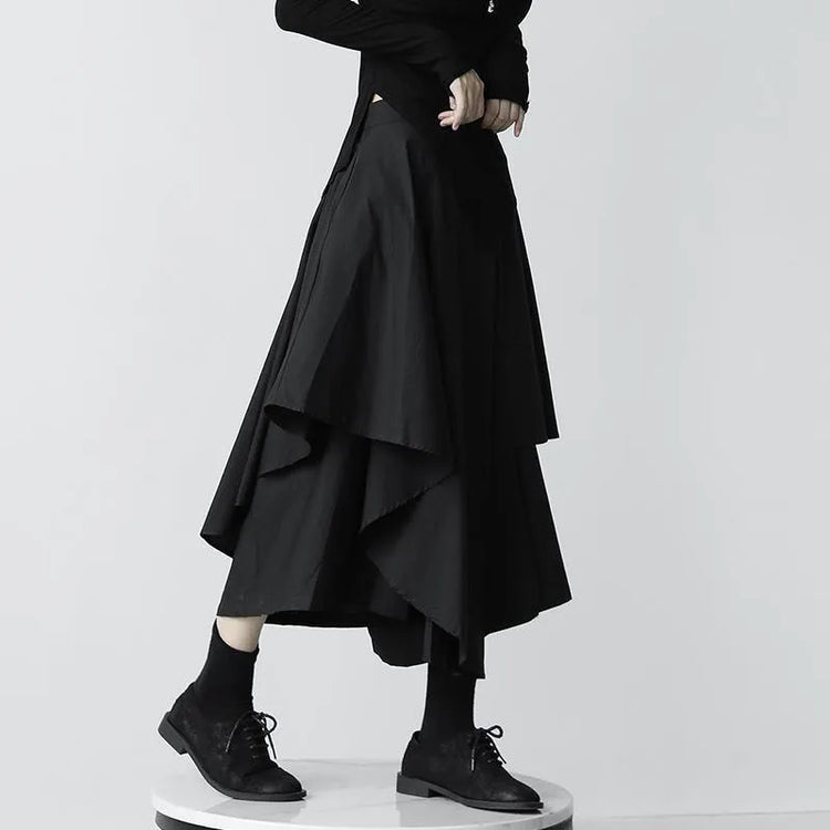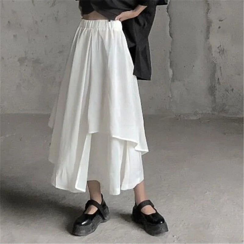Women Skirts Gothic Irregular Skirts Pants Women High Waist White Black Long Skirts Female Pleated Skirts Culottes Women Clothes