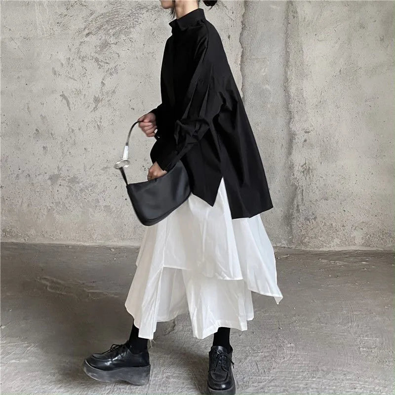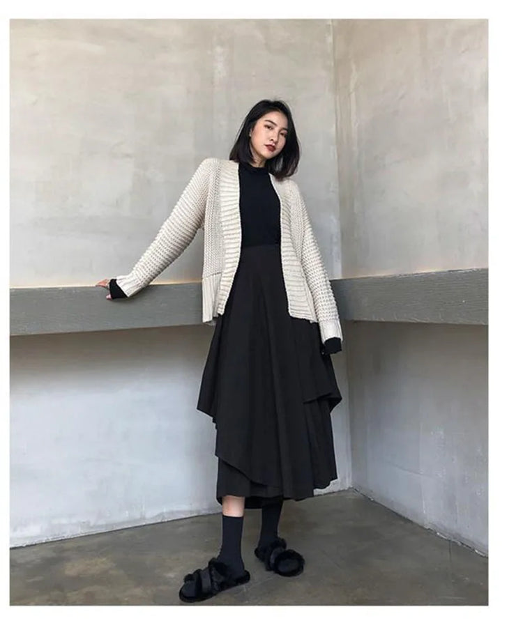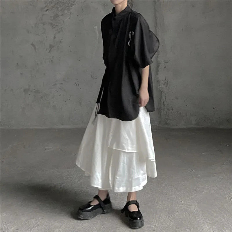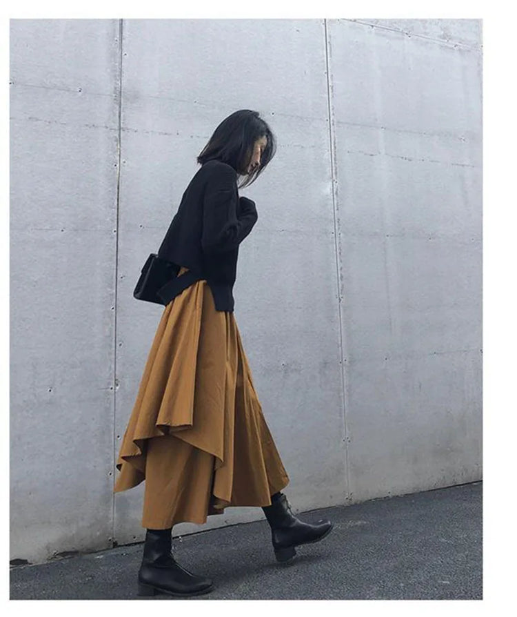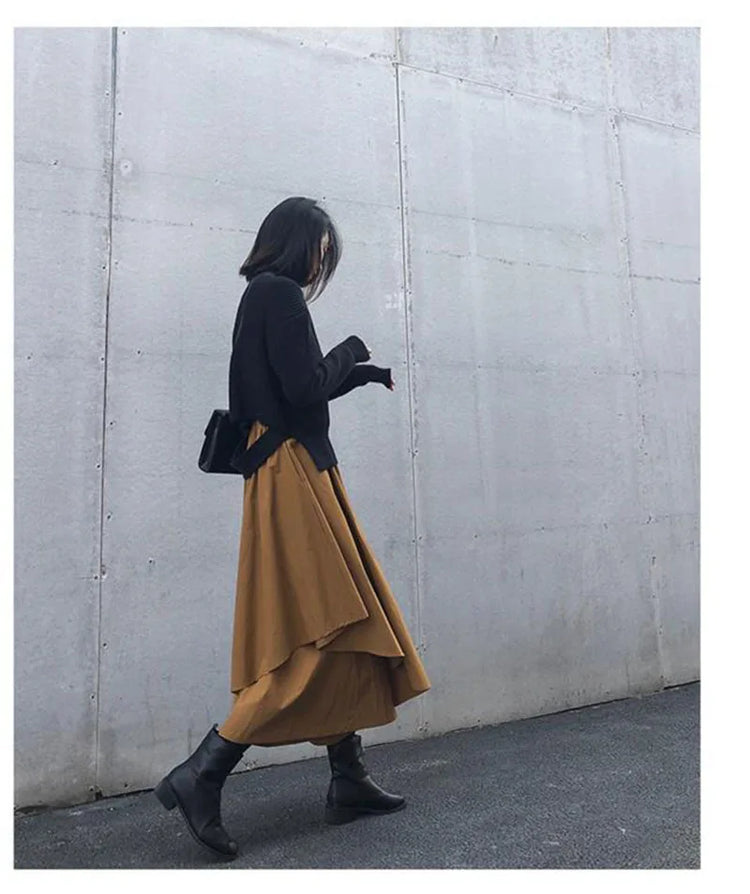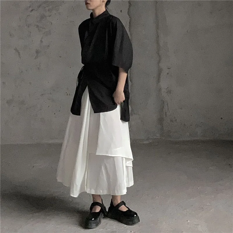 Women Skirts Gothic Irregular Skirts Pants Women High Waist White Black Long Skirts Female Pleated Skirts Culottes Women Clothes
